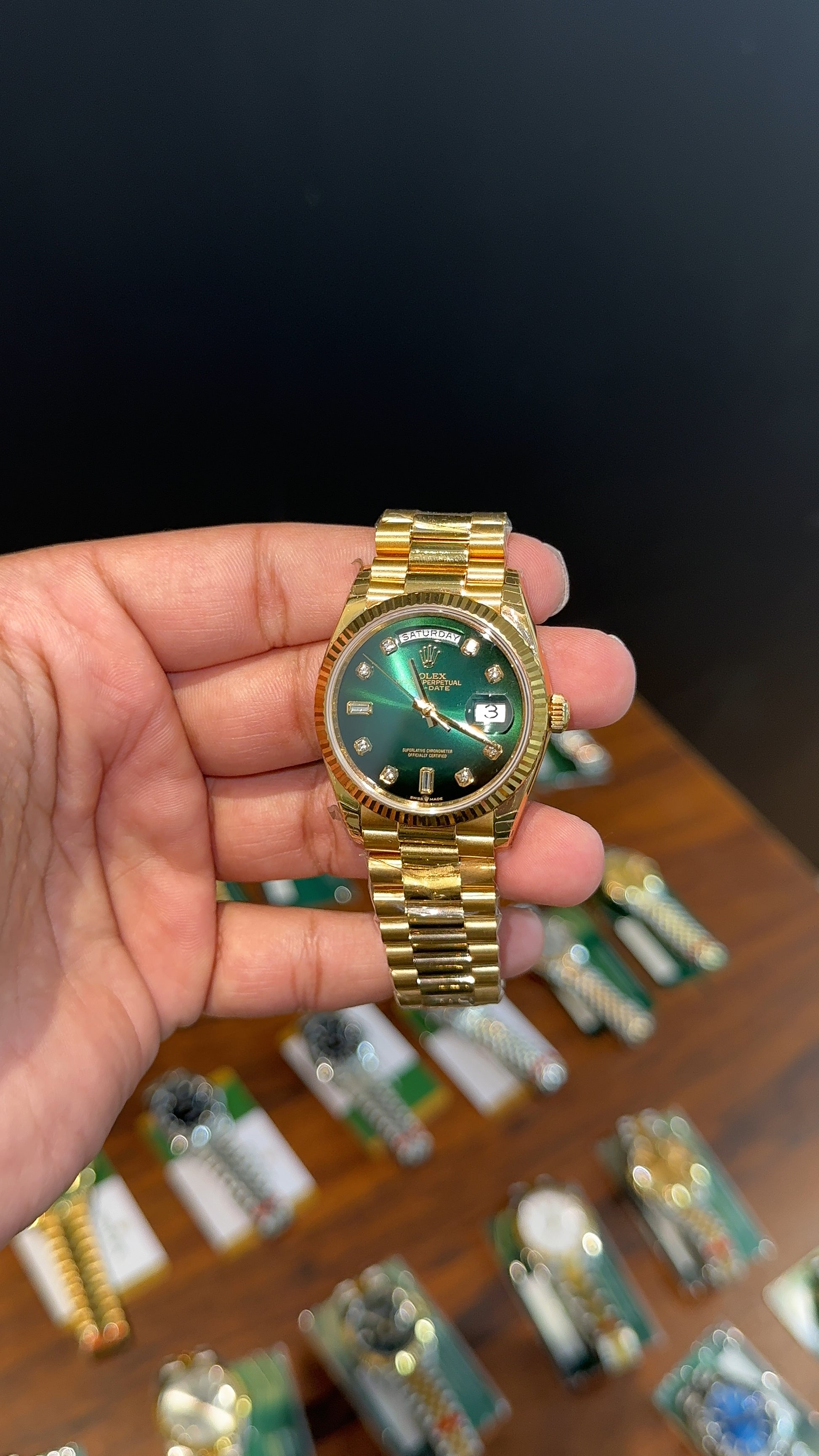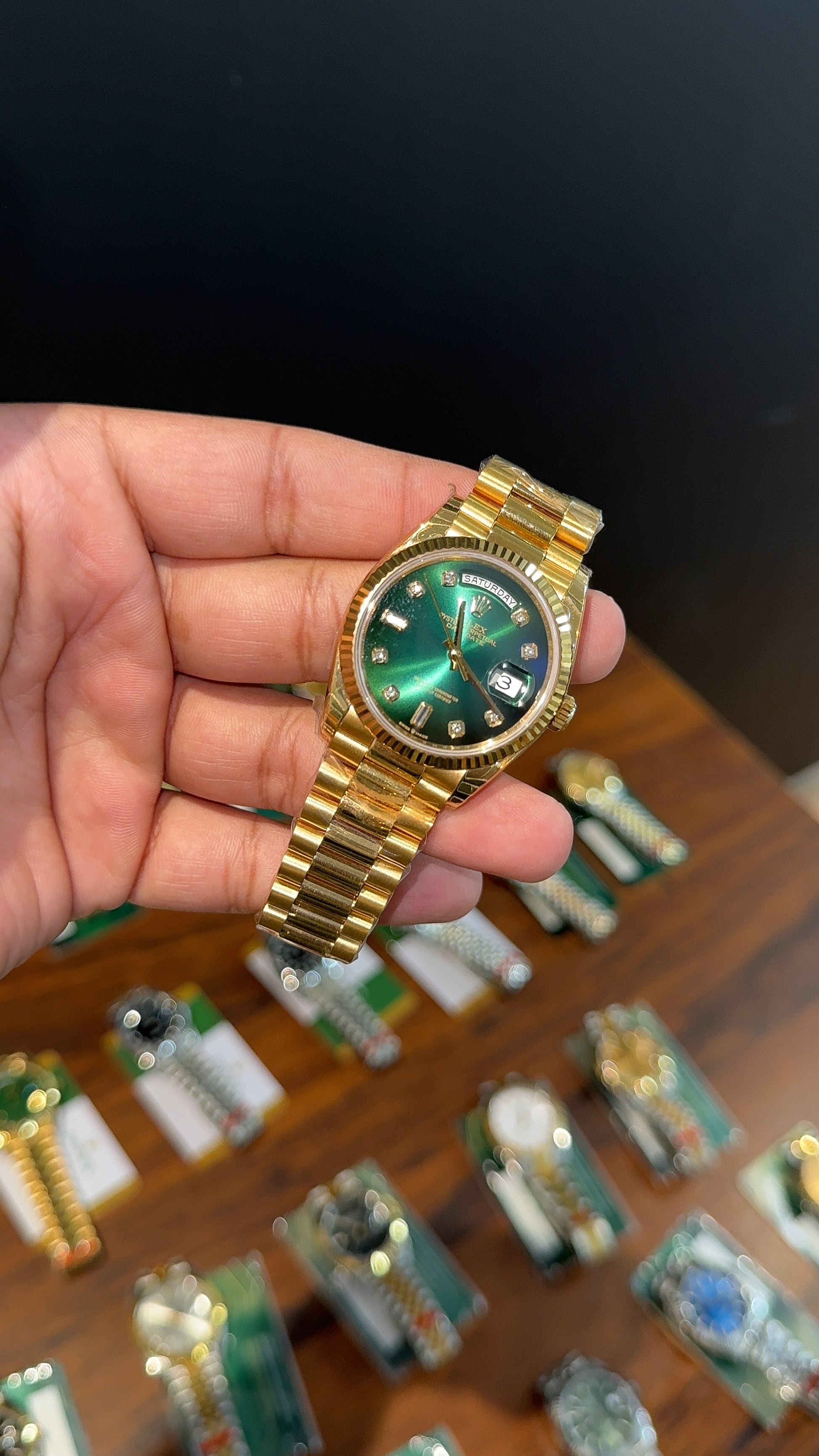 Premium Daydate | 36mm | Gold Chain | Gradient Green Diamond Dial