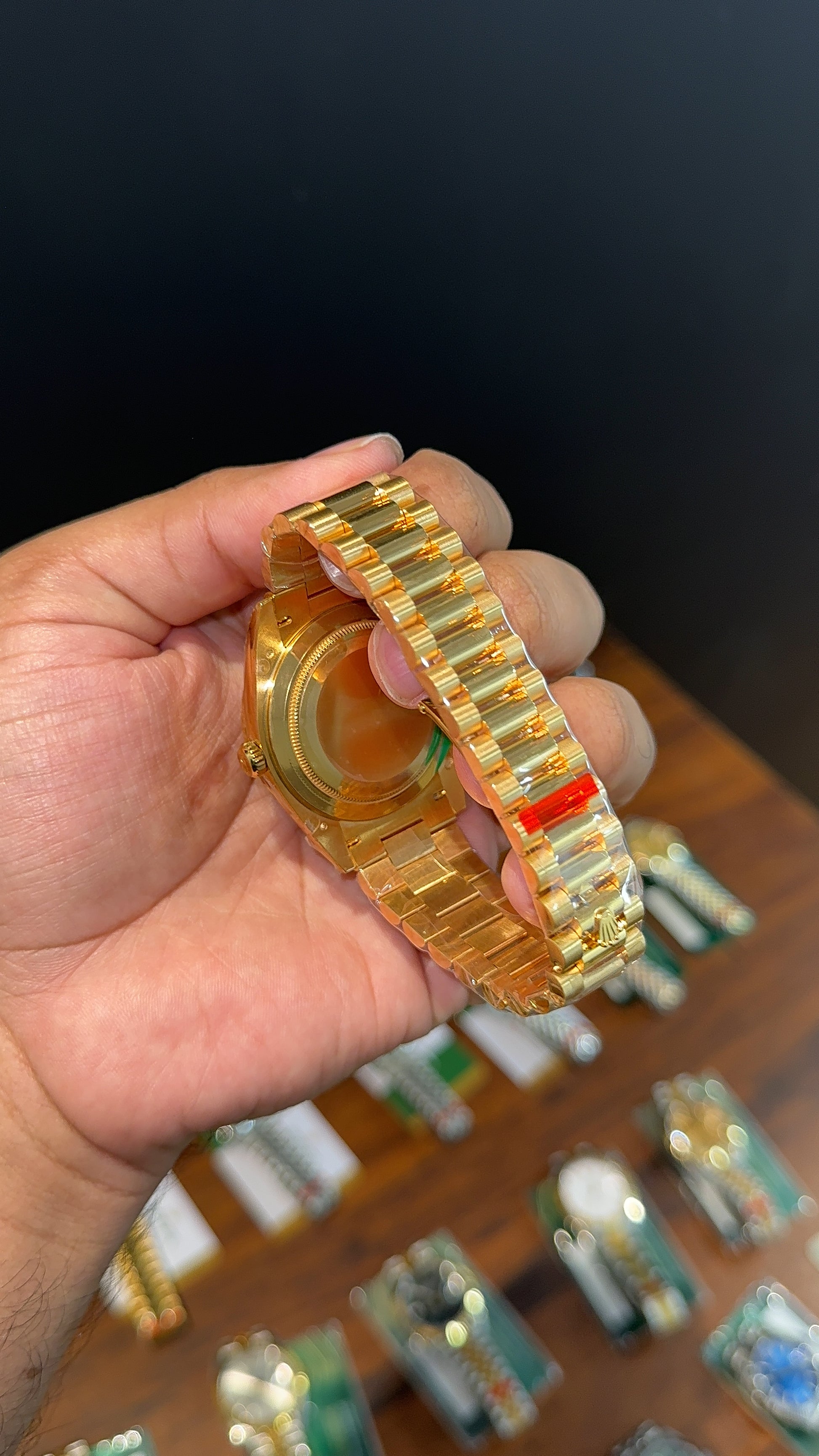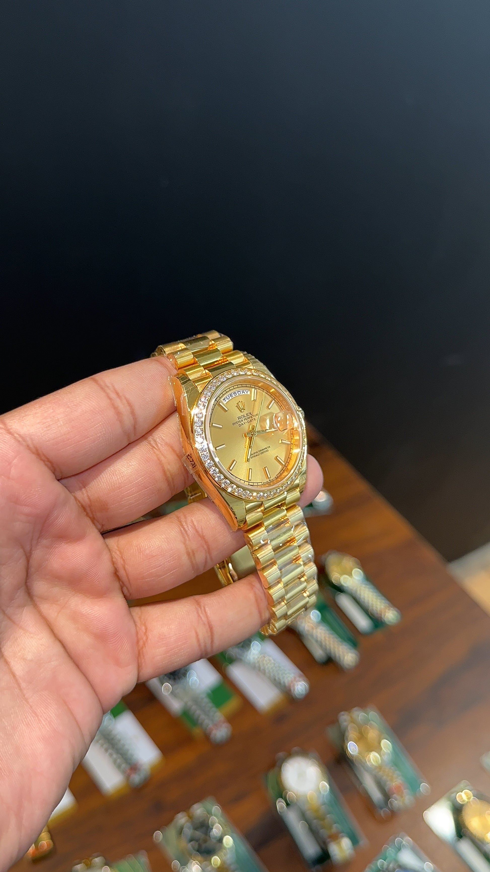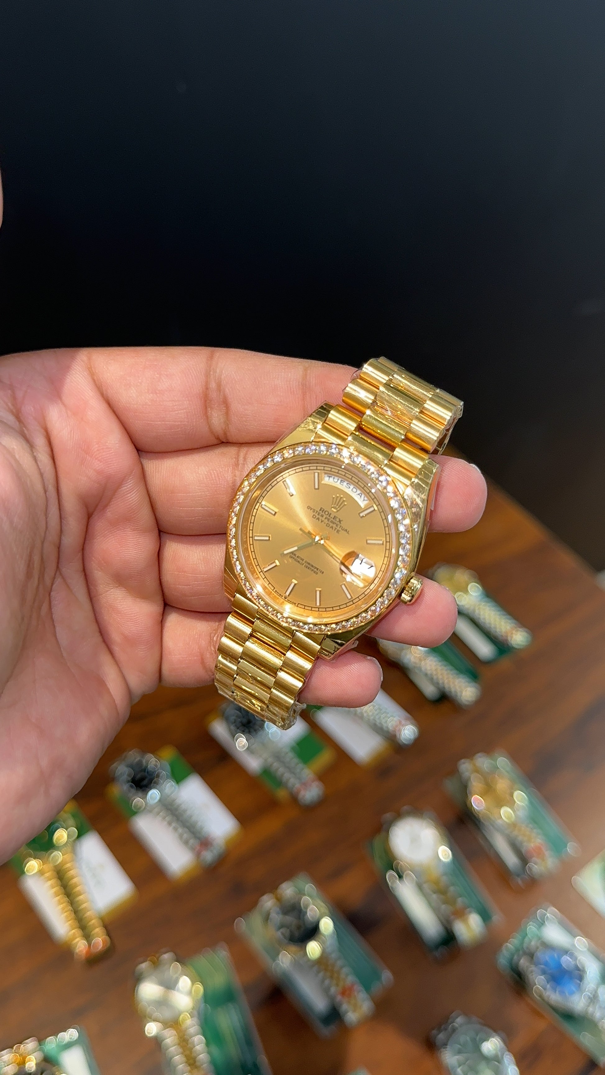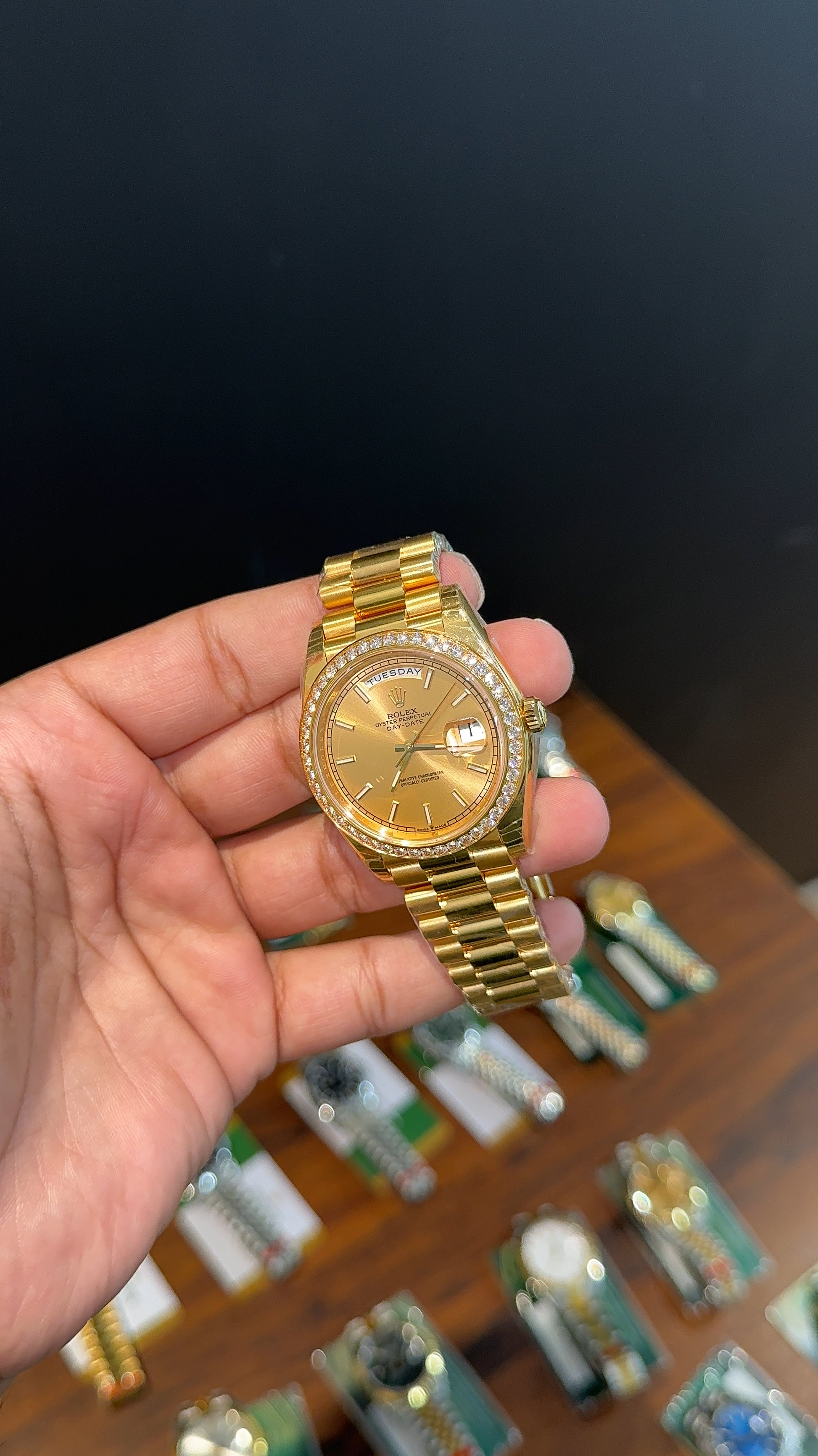 Premium Daydate | 40mm | Diamond Bezel | Gold Chain | Gold Dial