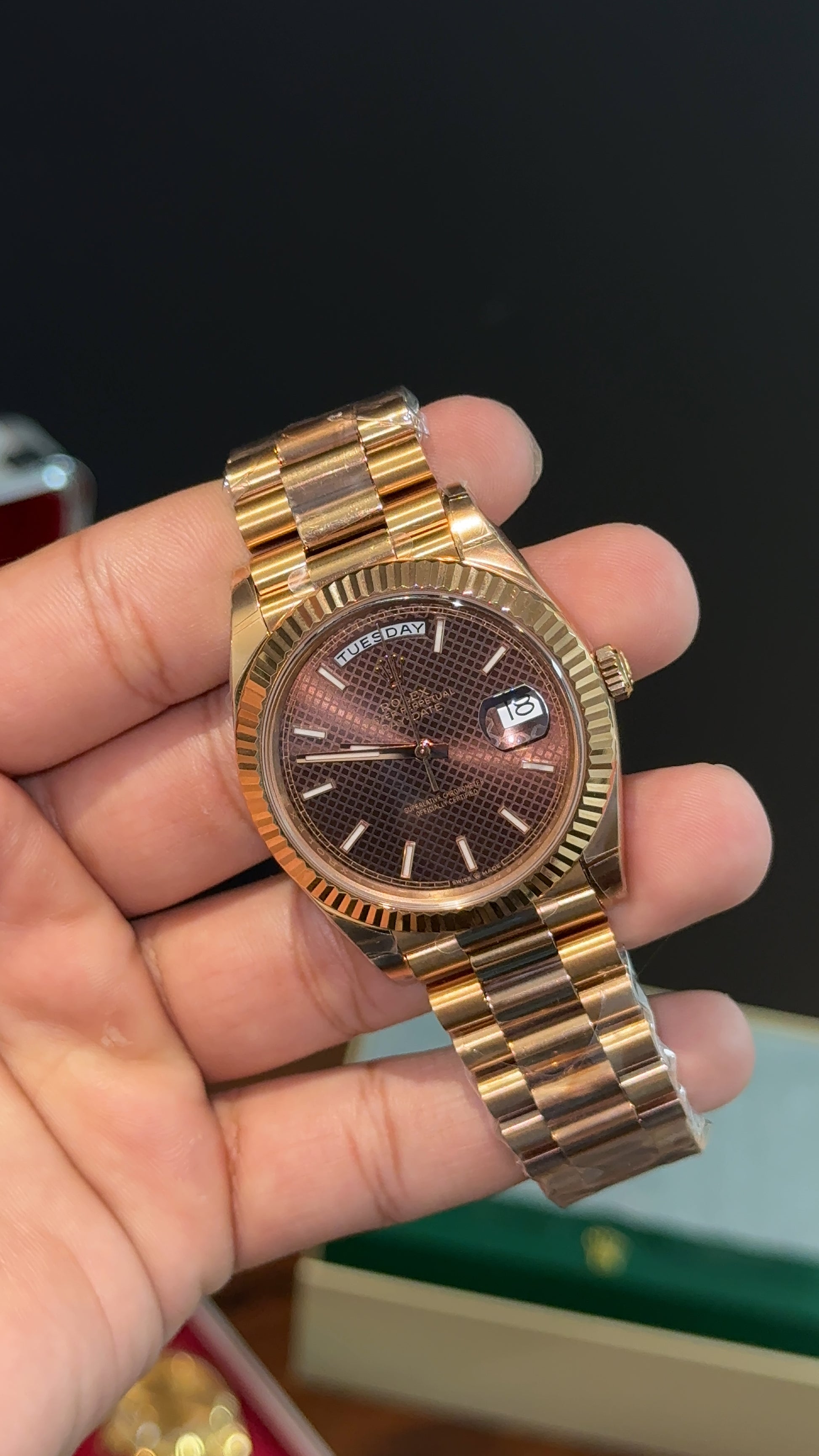 Premium Daydate | 40mm | Rose Chain | Dark Choco Textured Dial