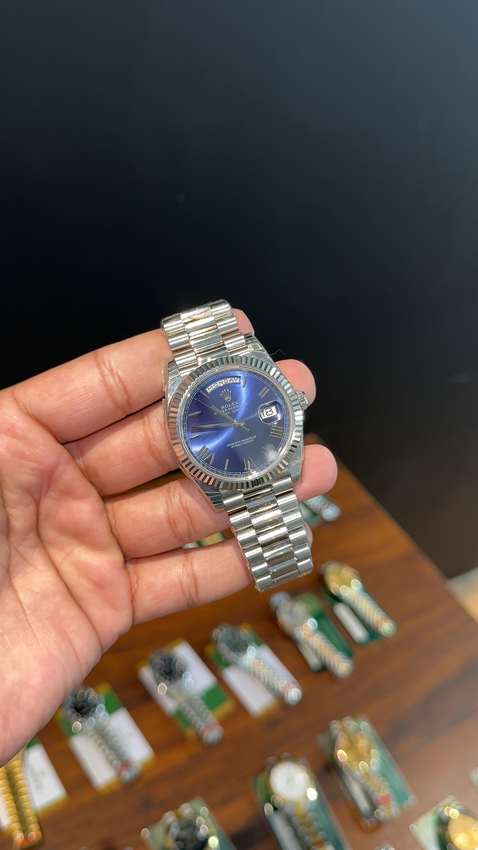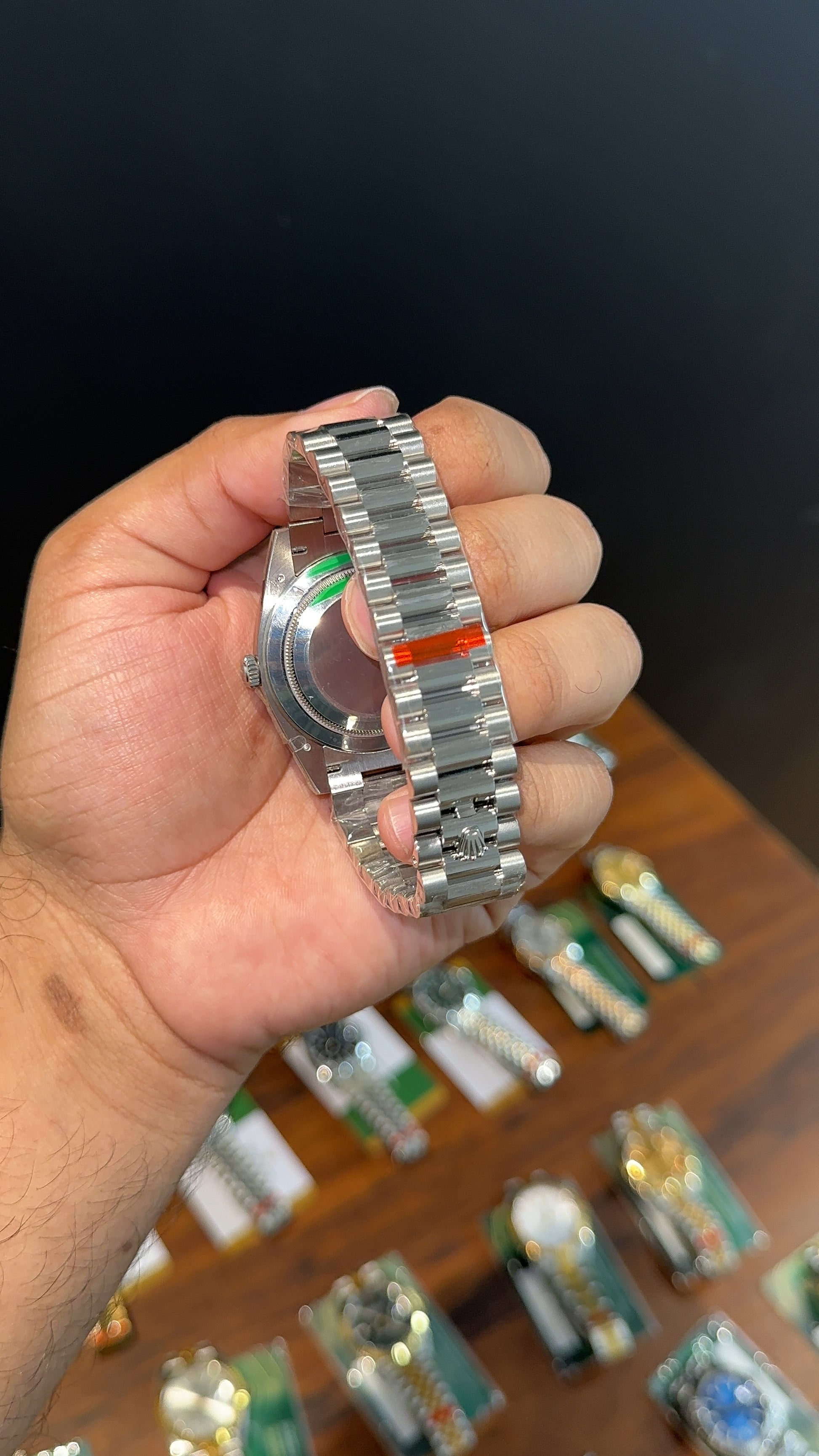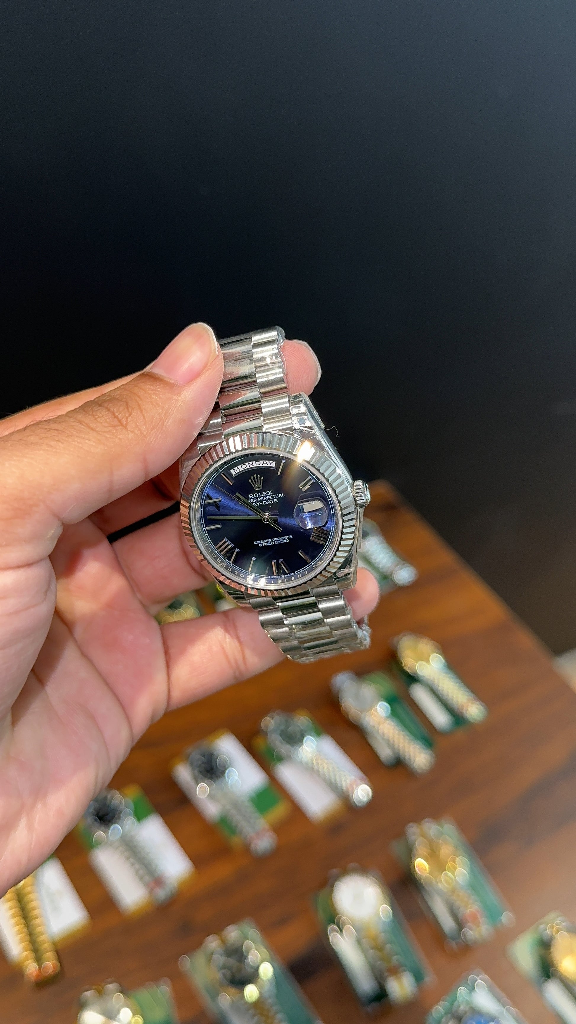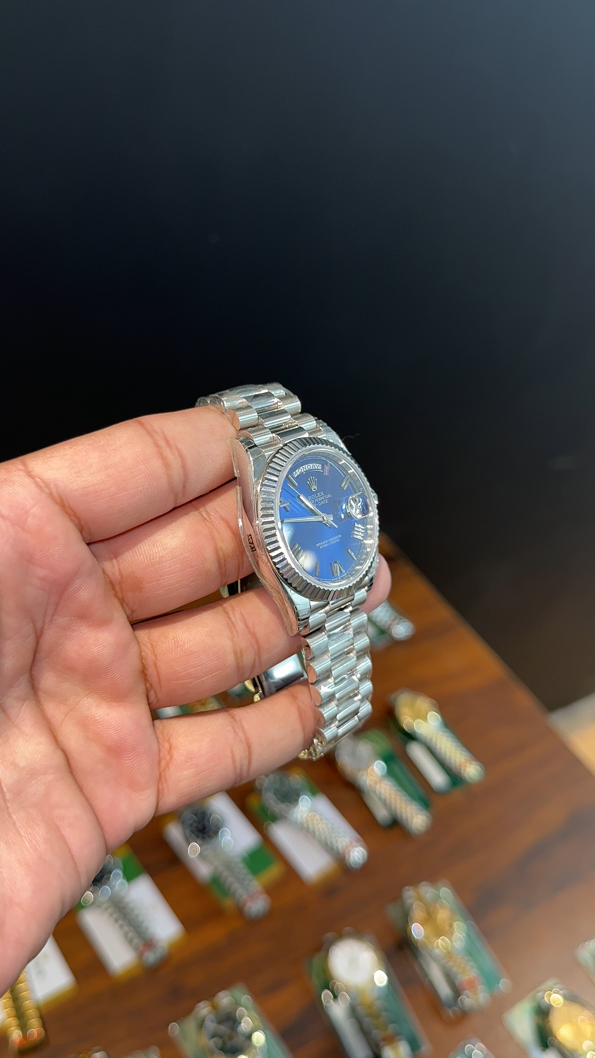 Premium Daydate | 40mm | Silver Chain | Blueish Dial