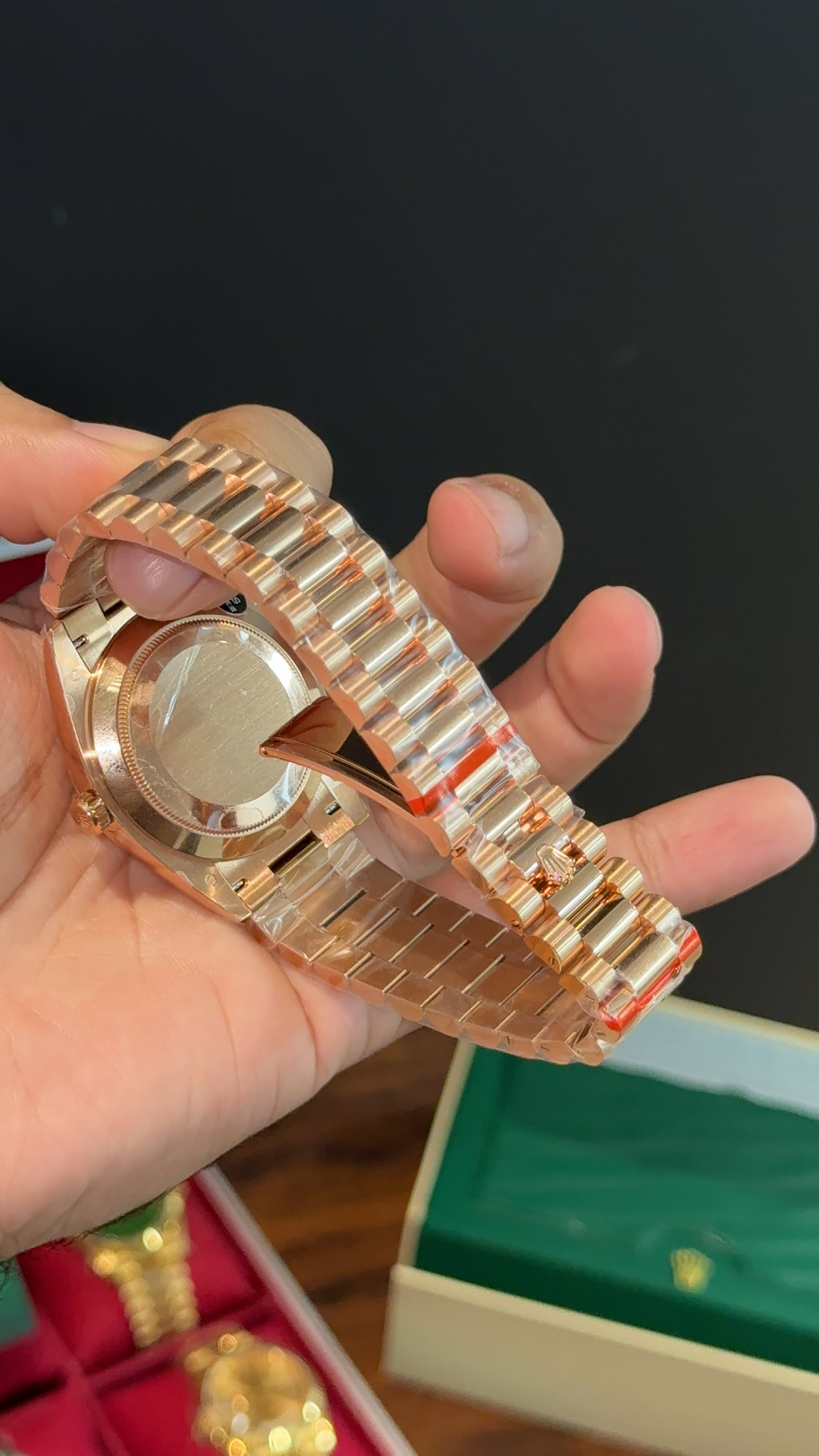 Premium Daydate | 40mm | Rose Chain | Smokey Black Dial