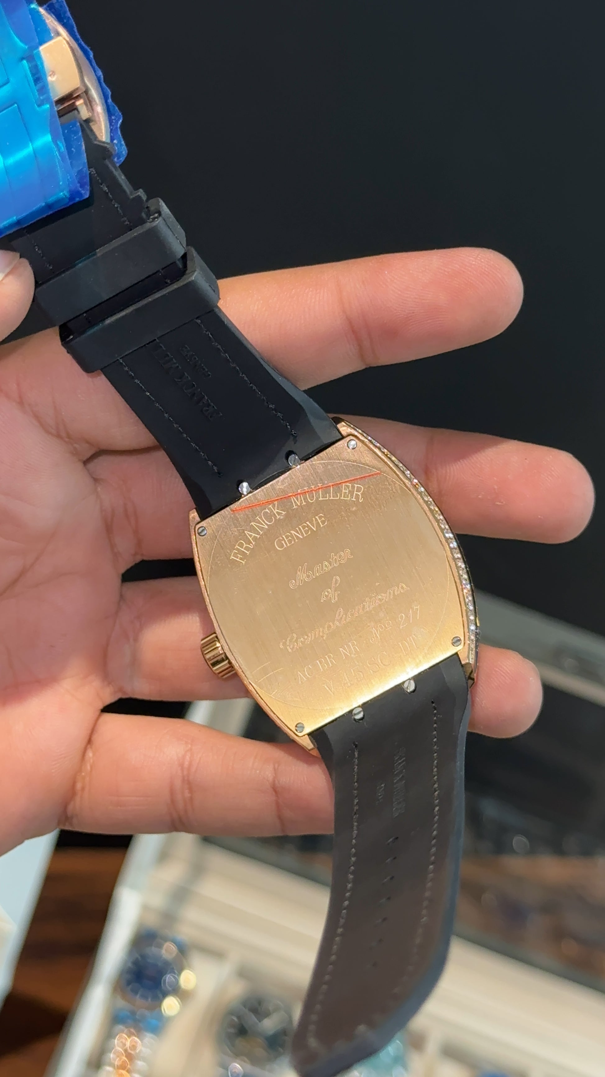 Premium Franck Muller | Vanguard Edition | Rose Diamond Case | Black Leather Strap | Rose Pearl Dial