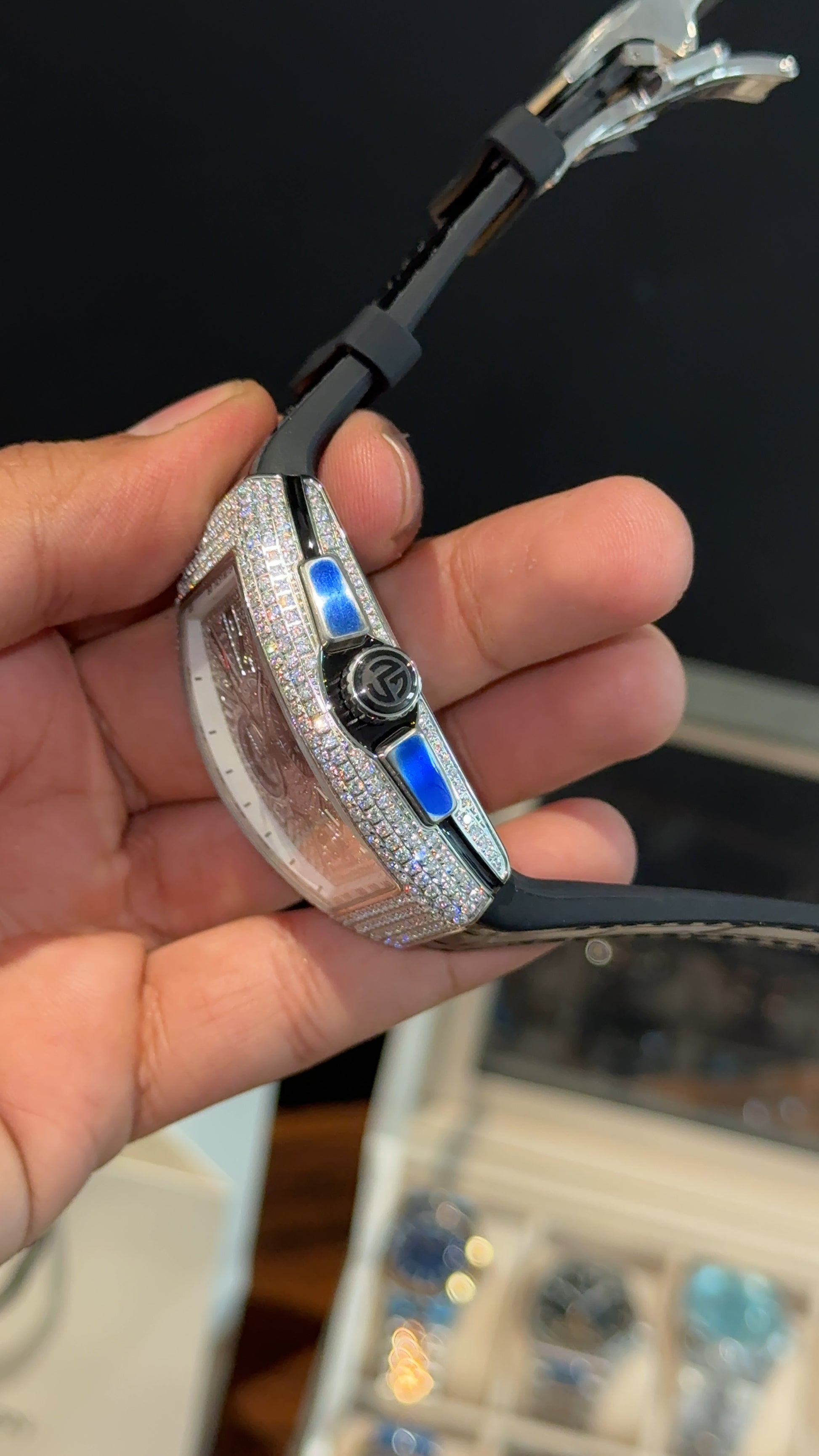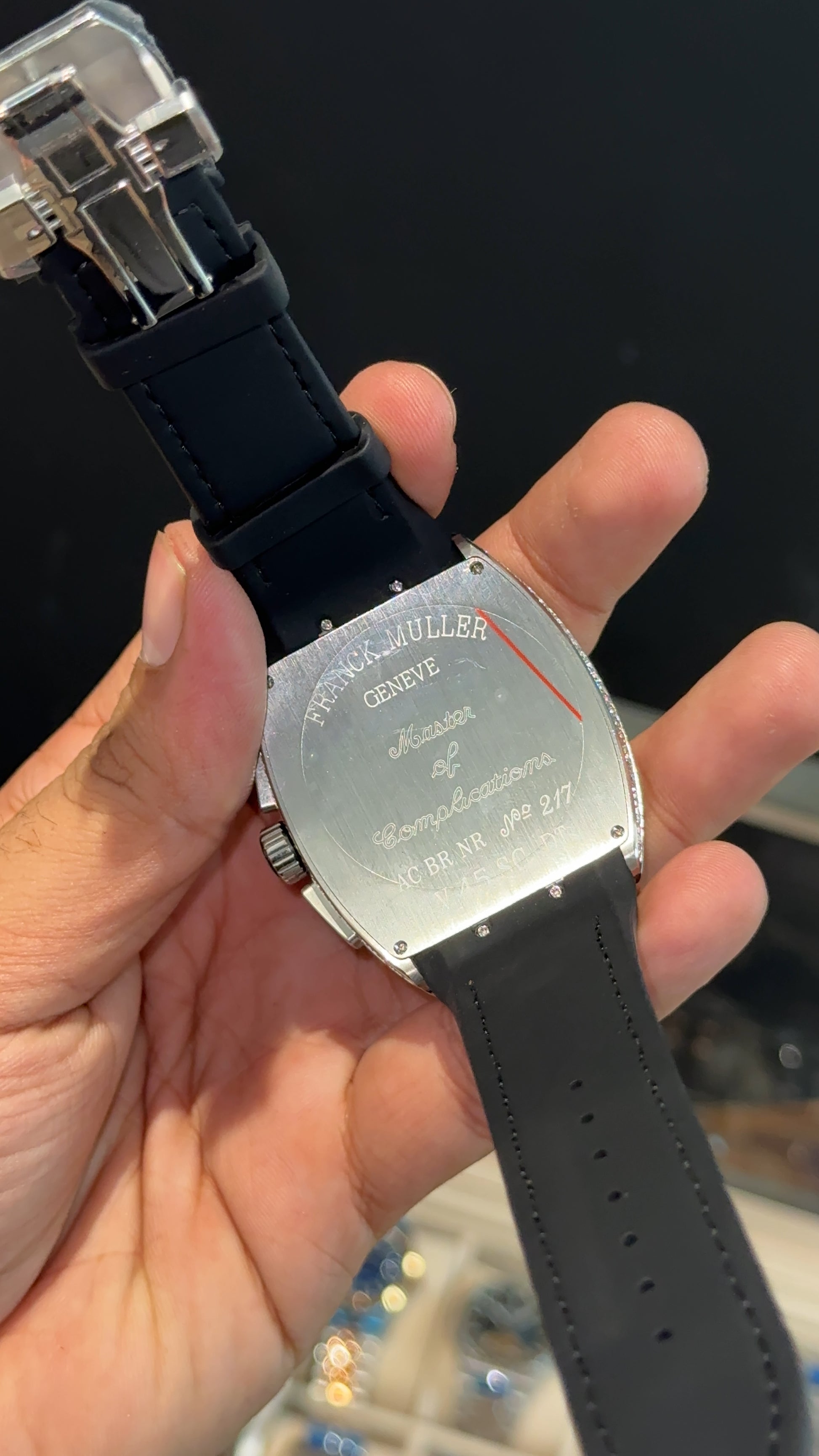 Premium Franck Muller | Vanguard Chronograph Edition | Silver Diamond Case | Black Leather Strap | Silver Pearl Dial