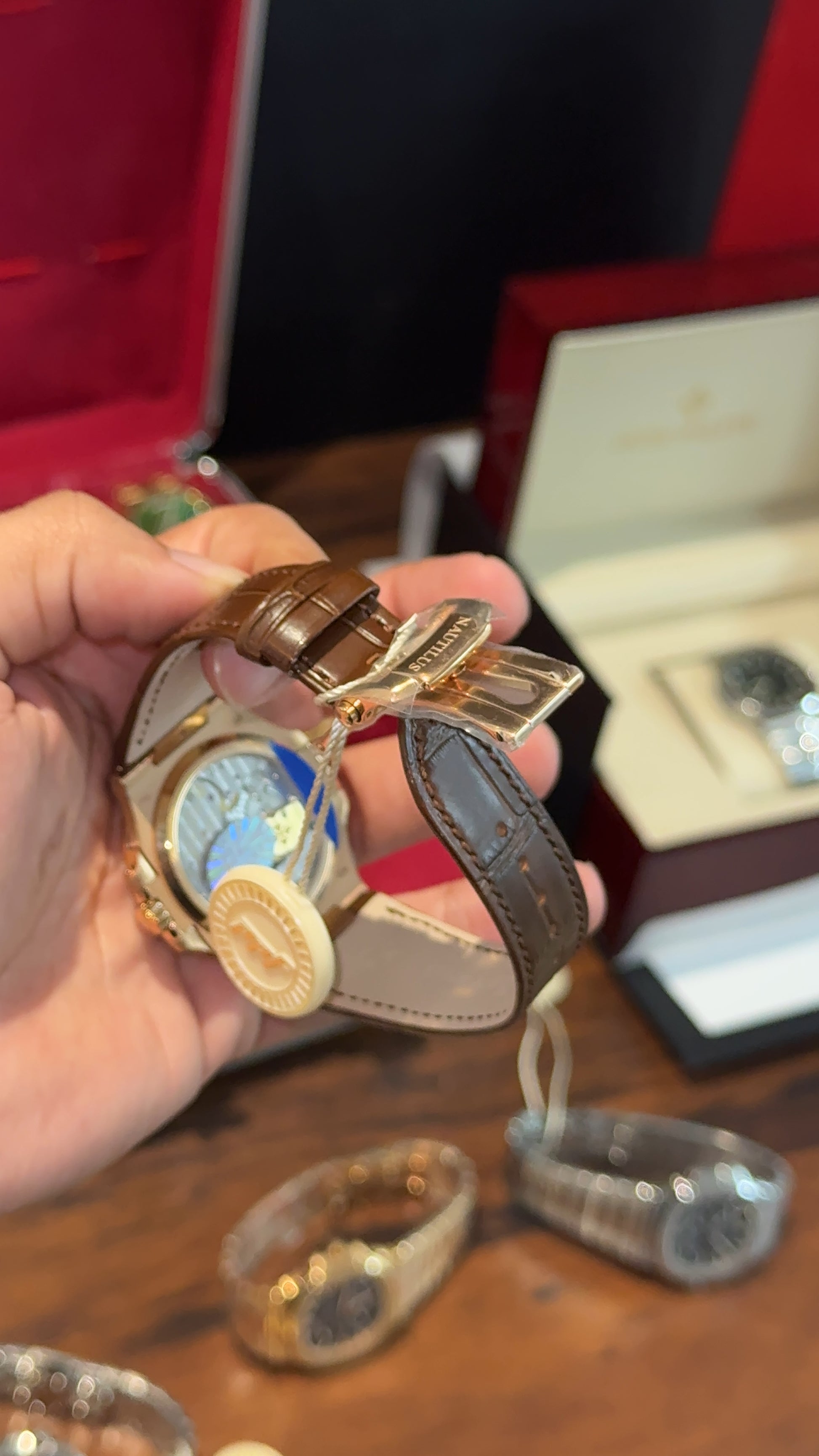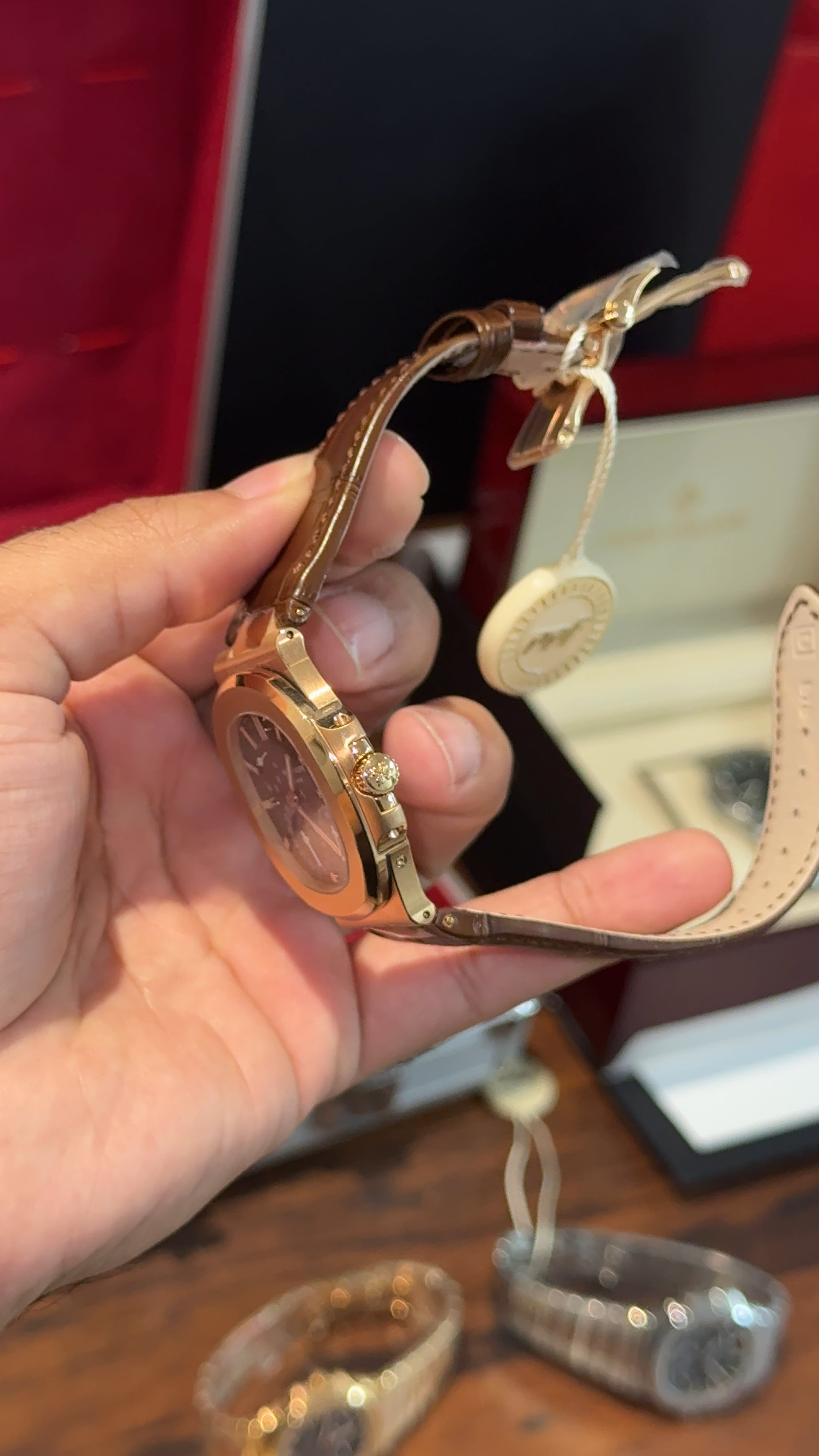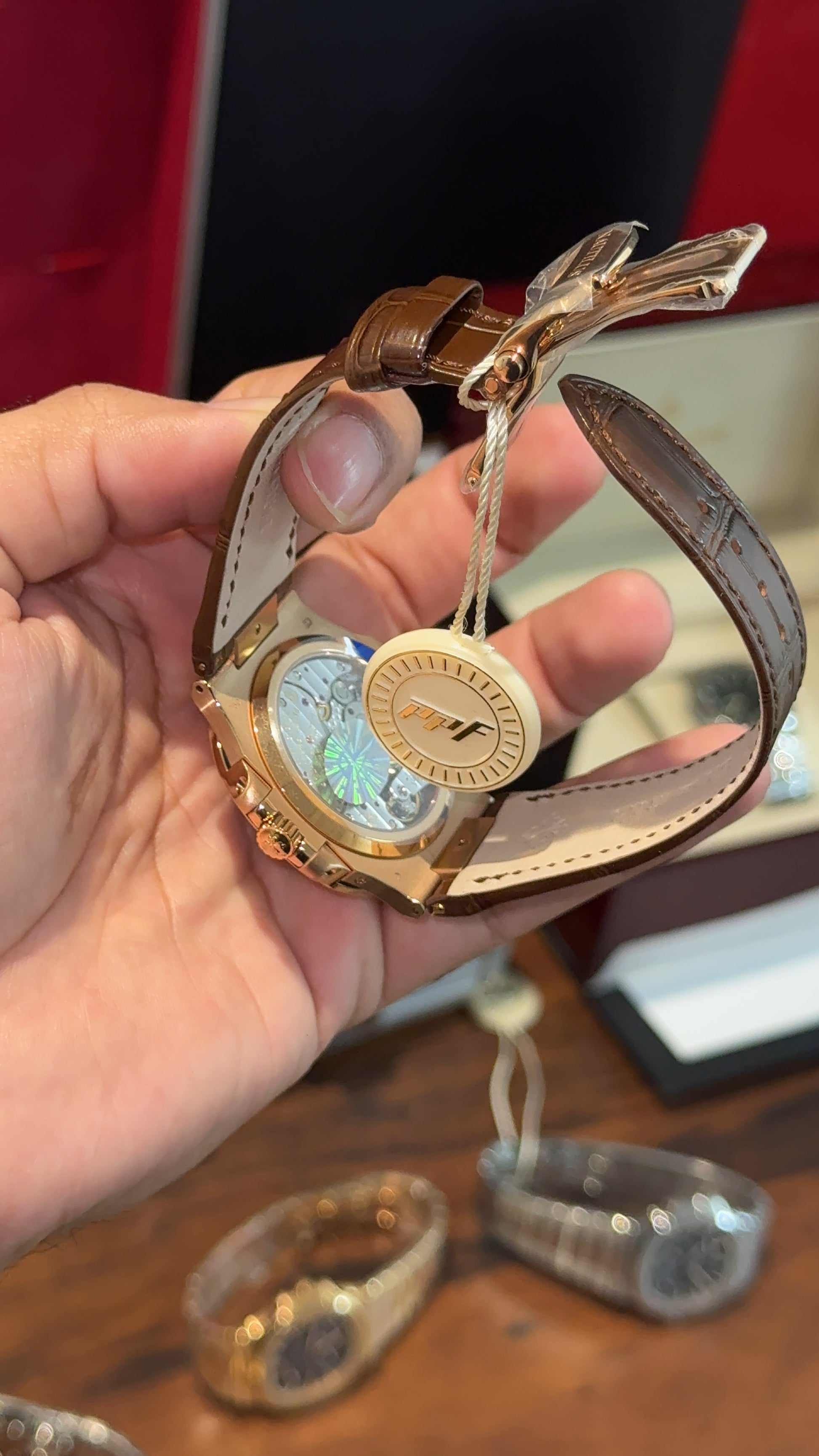 Premium Patek | Rose Case | Brown Leather Strap | Chrono | Grey Dial