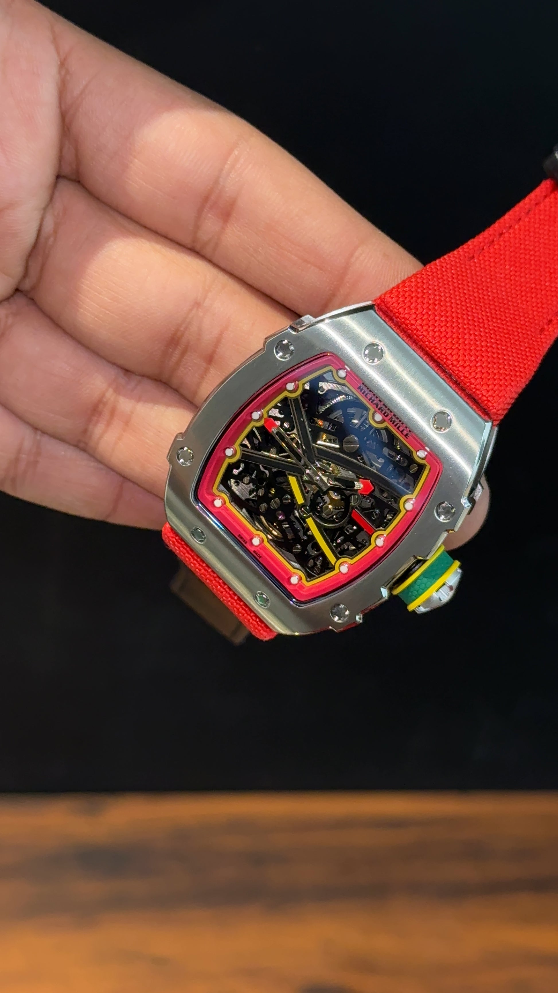Premium Richard Mille | Silver | RM 67-02 Edition | Red Strap | Skeleton | Black Dial