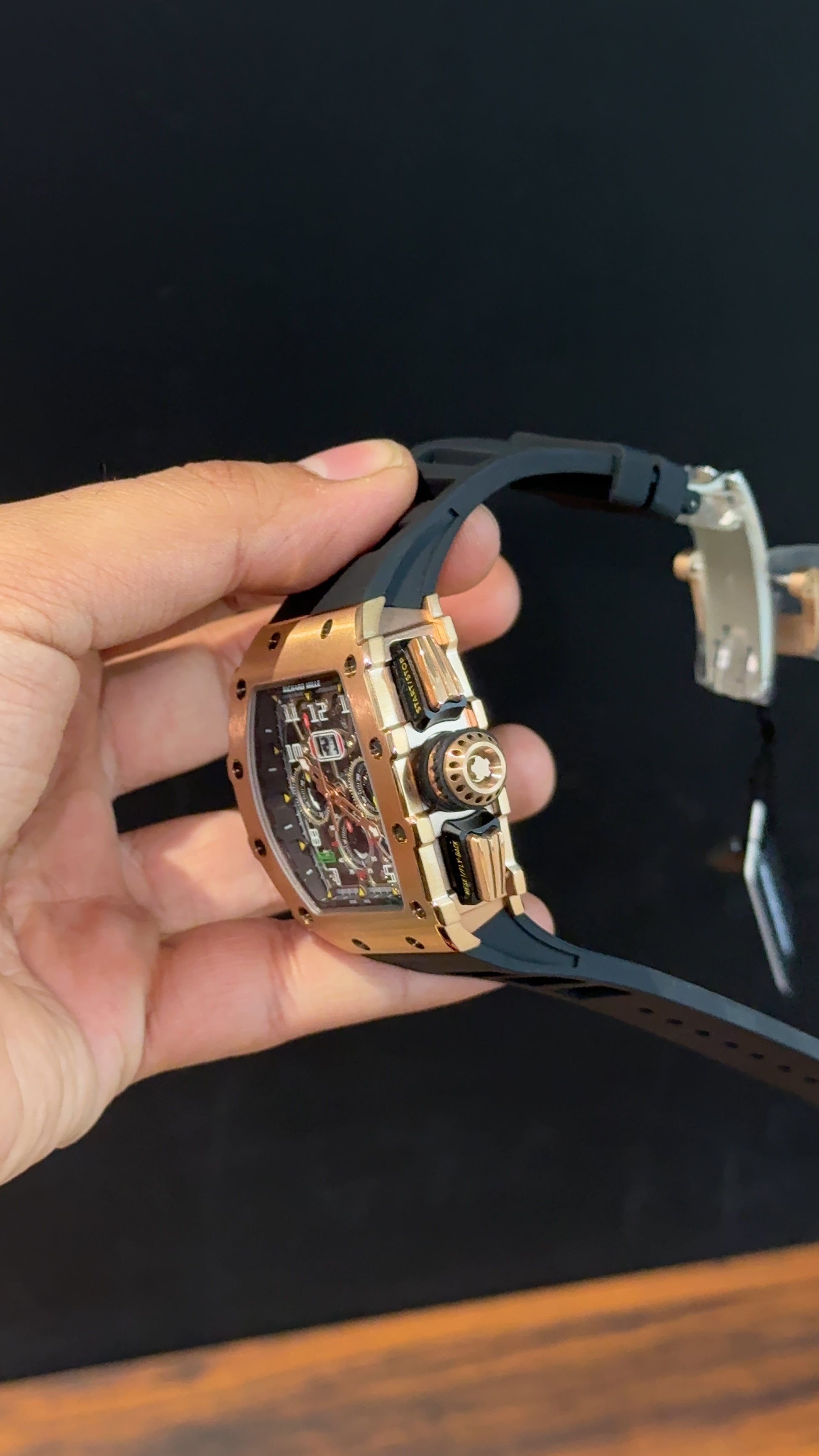 Premium Richard Mille | Rose | RM 11-03 Edition | Black Strap | Skeleton | Chrono | Black Dial
