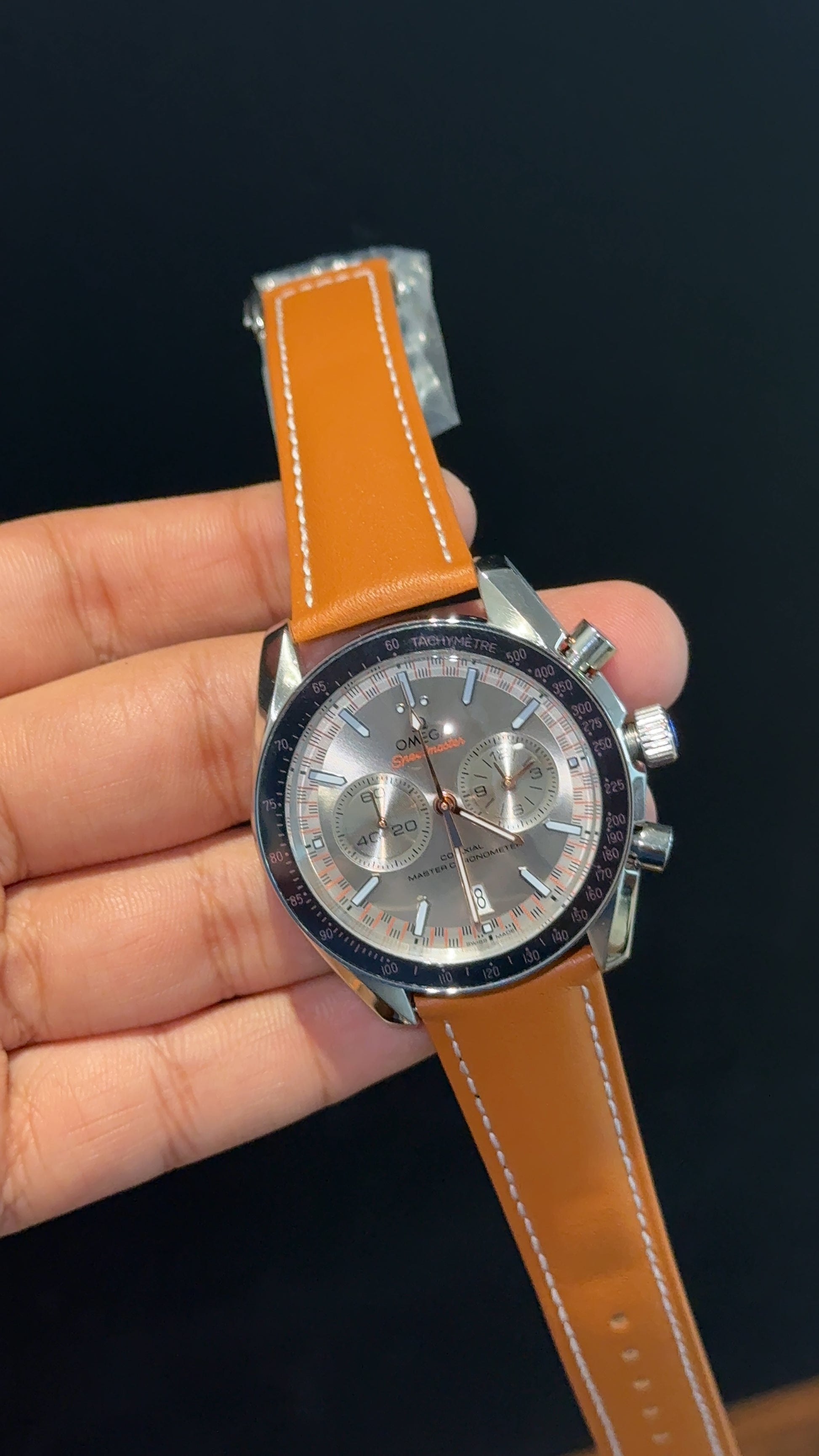 Speedmaster | Camel Strap | Chrono | Silver Grey Dial