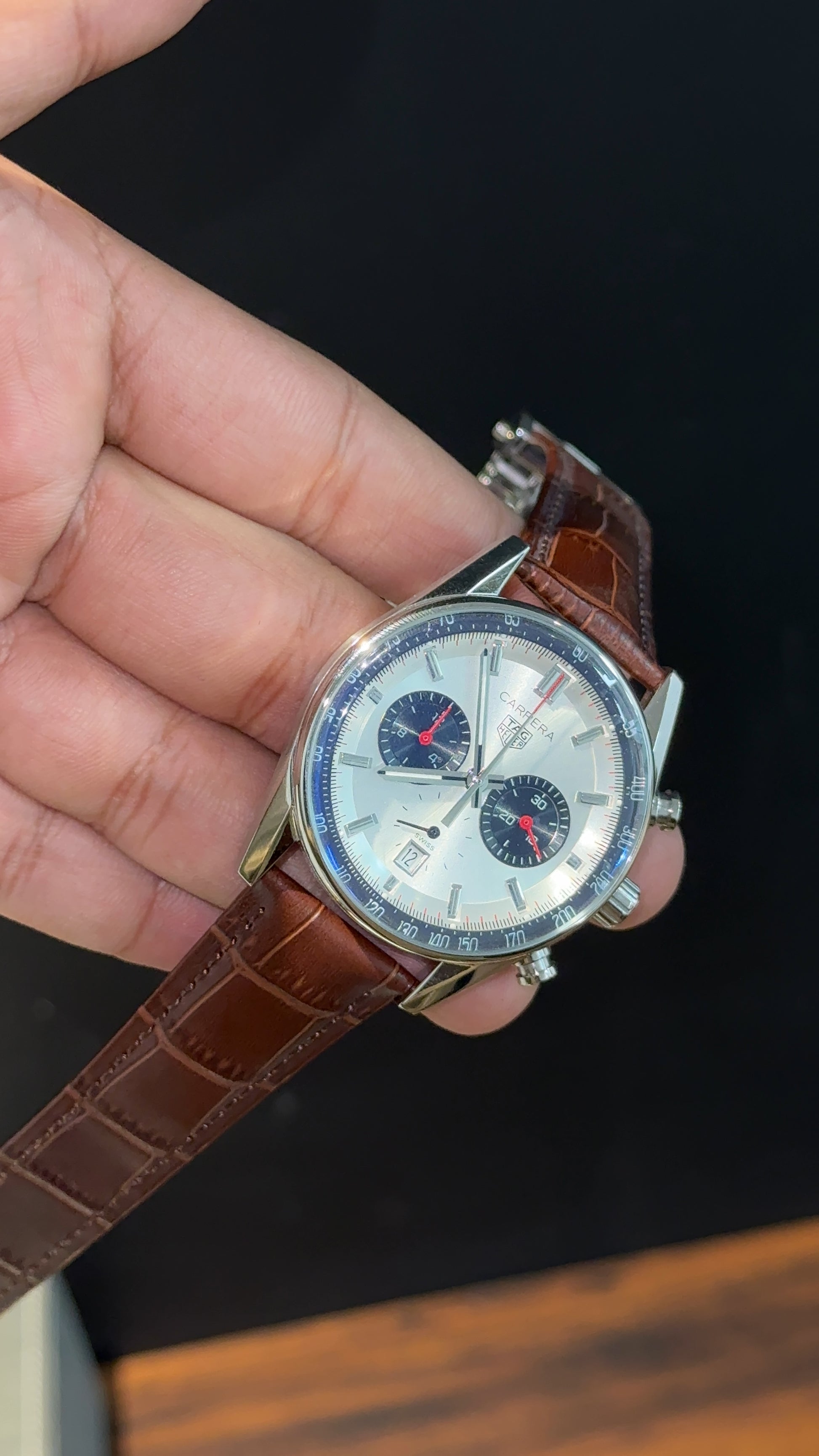 Tag Carrera | Brown Strap | Silver Bezel | Black Chrono | White Dial