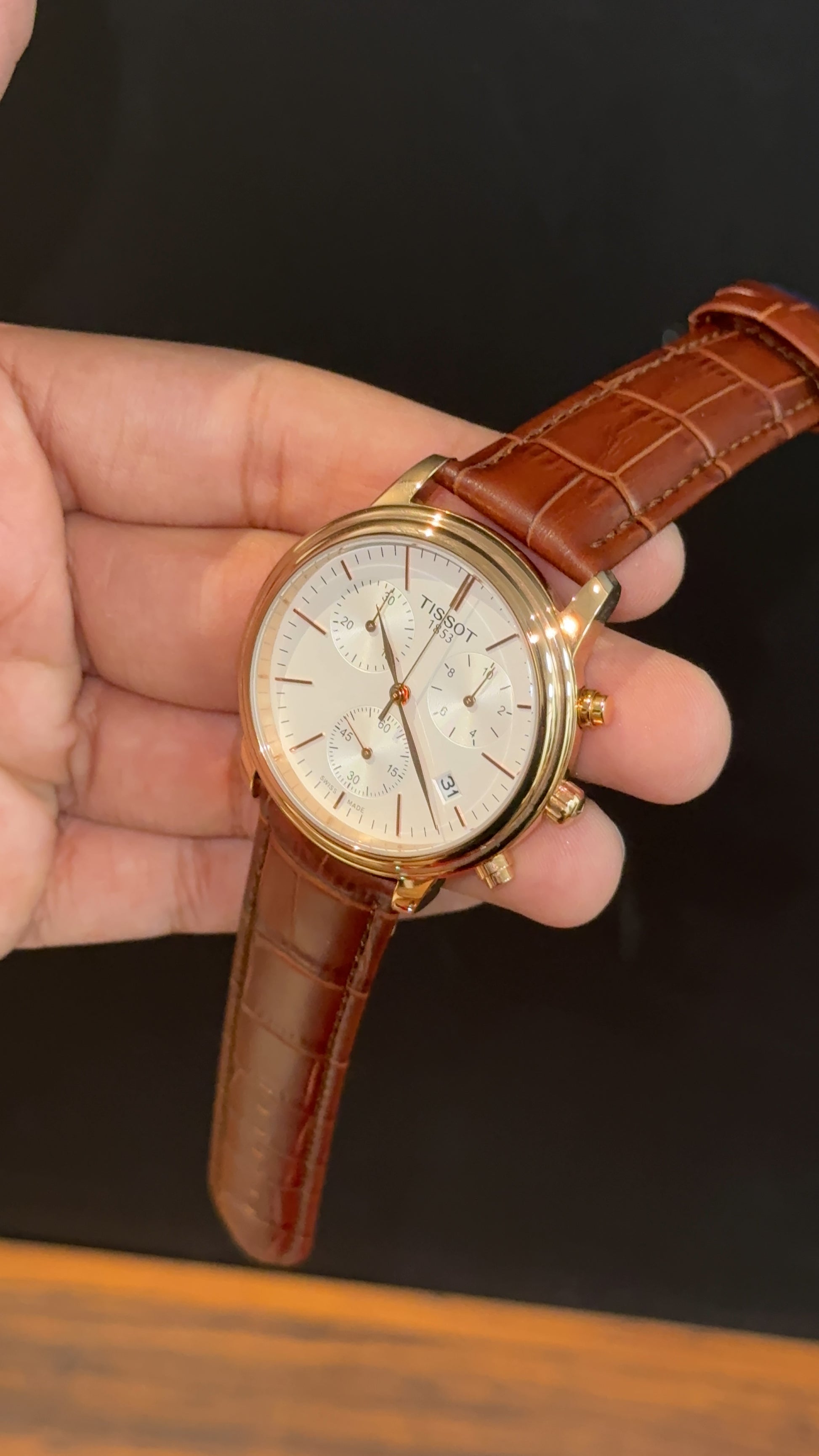Tissot Rose | Chrono | Brown Leather Strap | White Dial