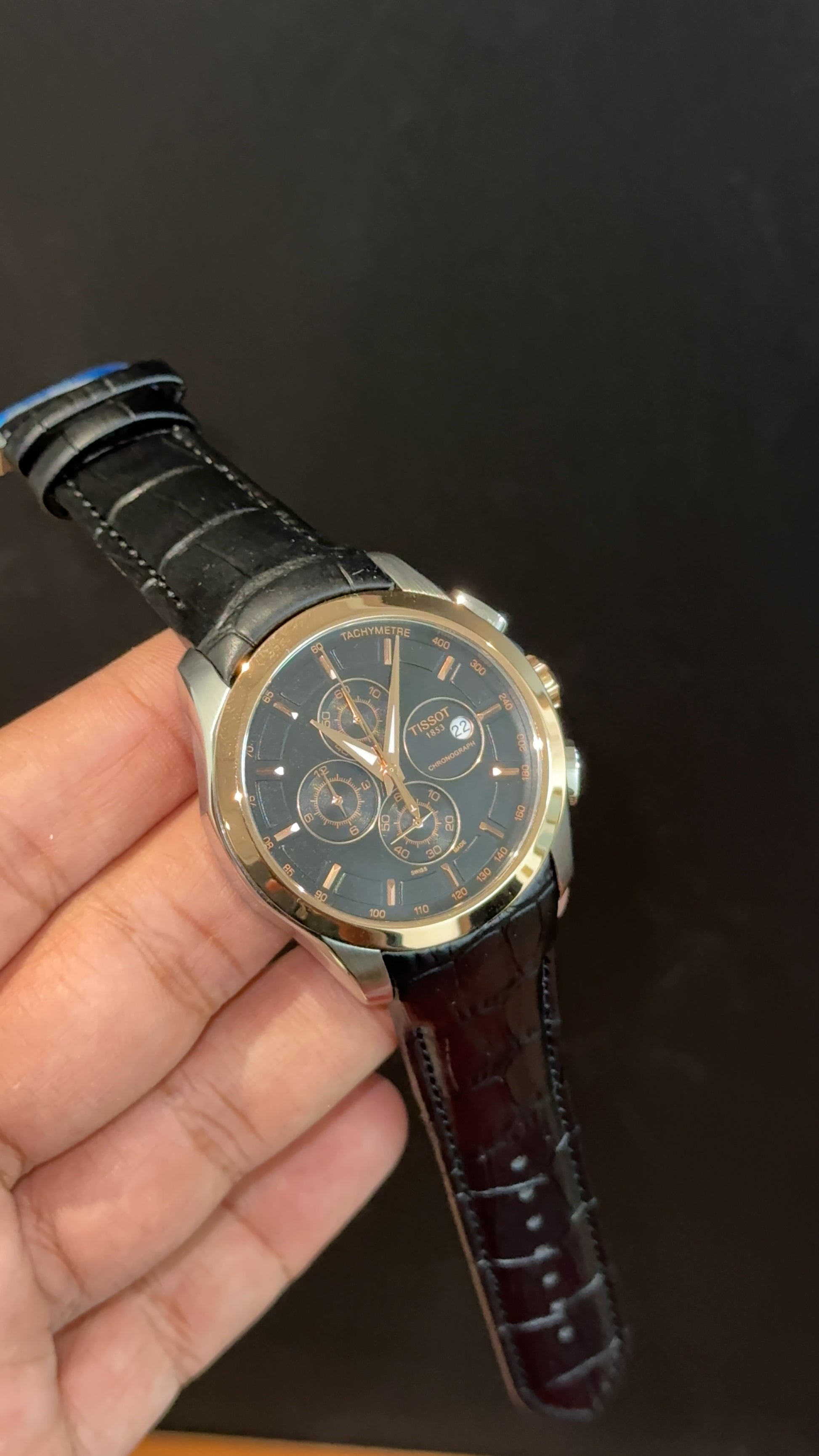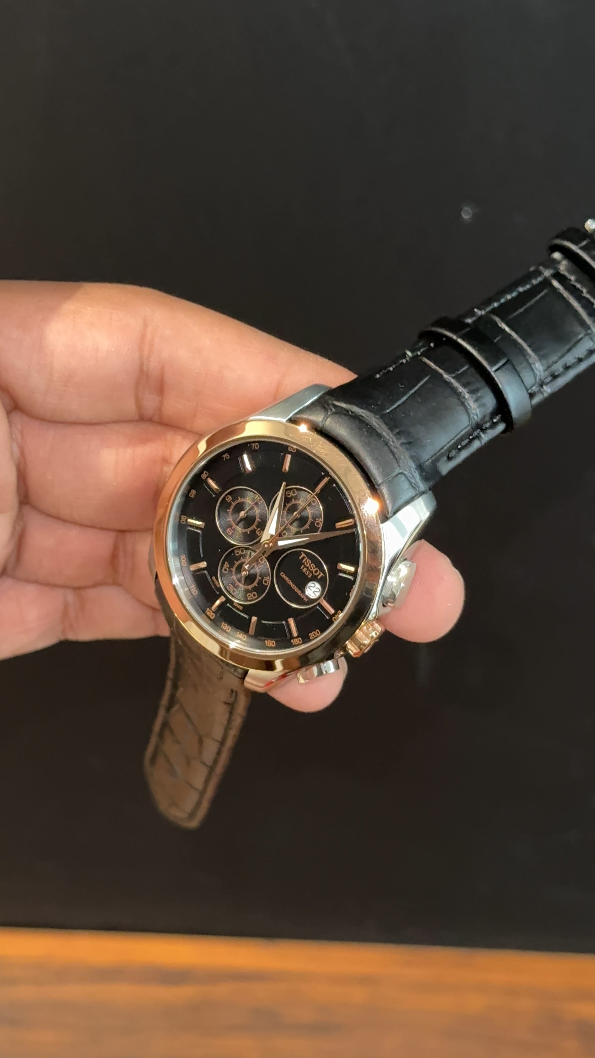 Tissot | Rose Bezel | Chrono | Black Leather Strap | Black Dial