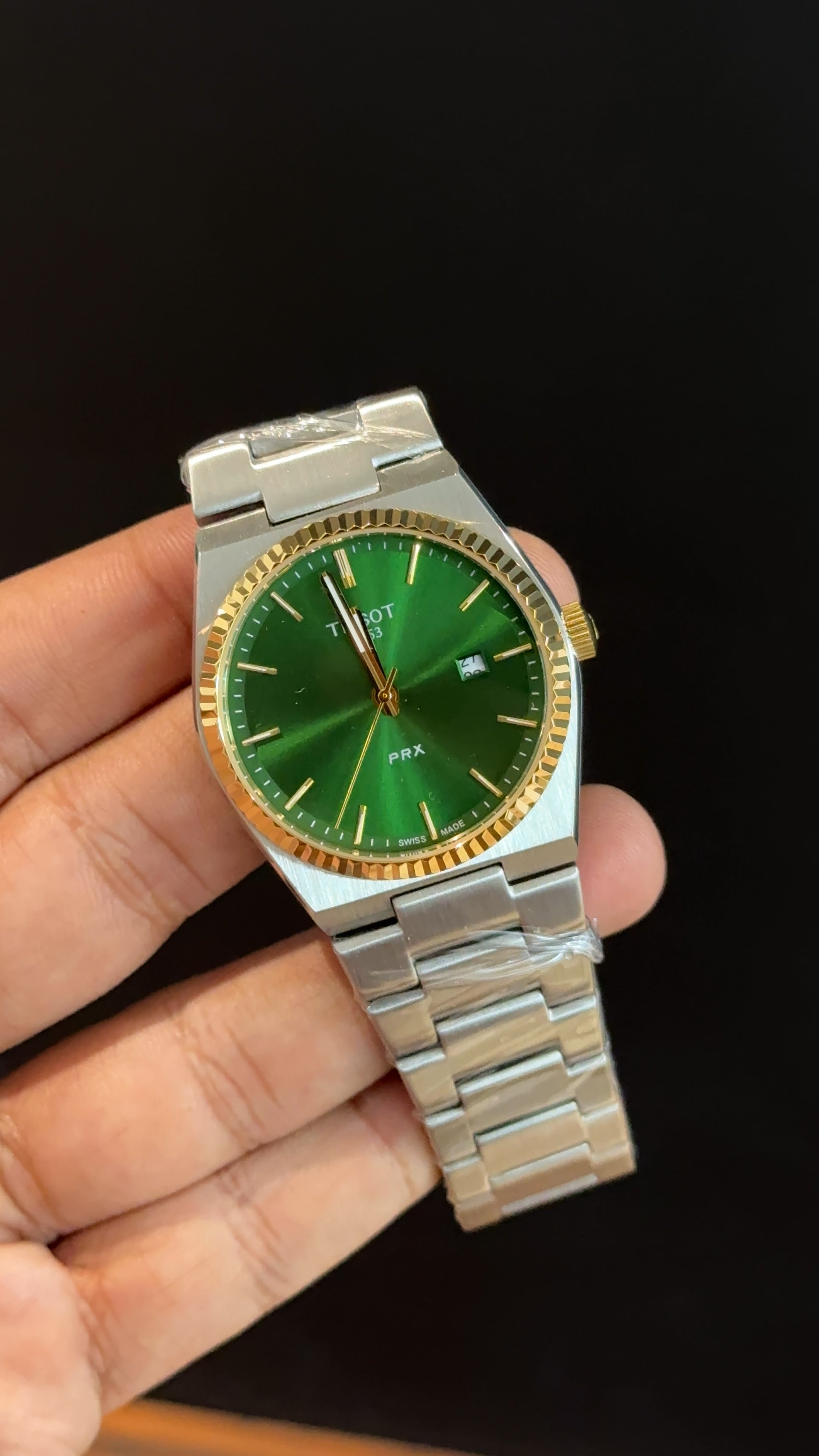 Tissot Prx | Silver Chain | Gold Bezel | Green Plain Dial