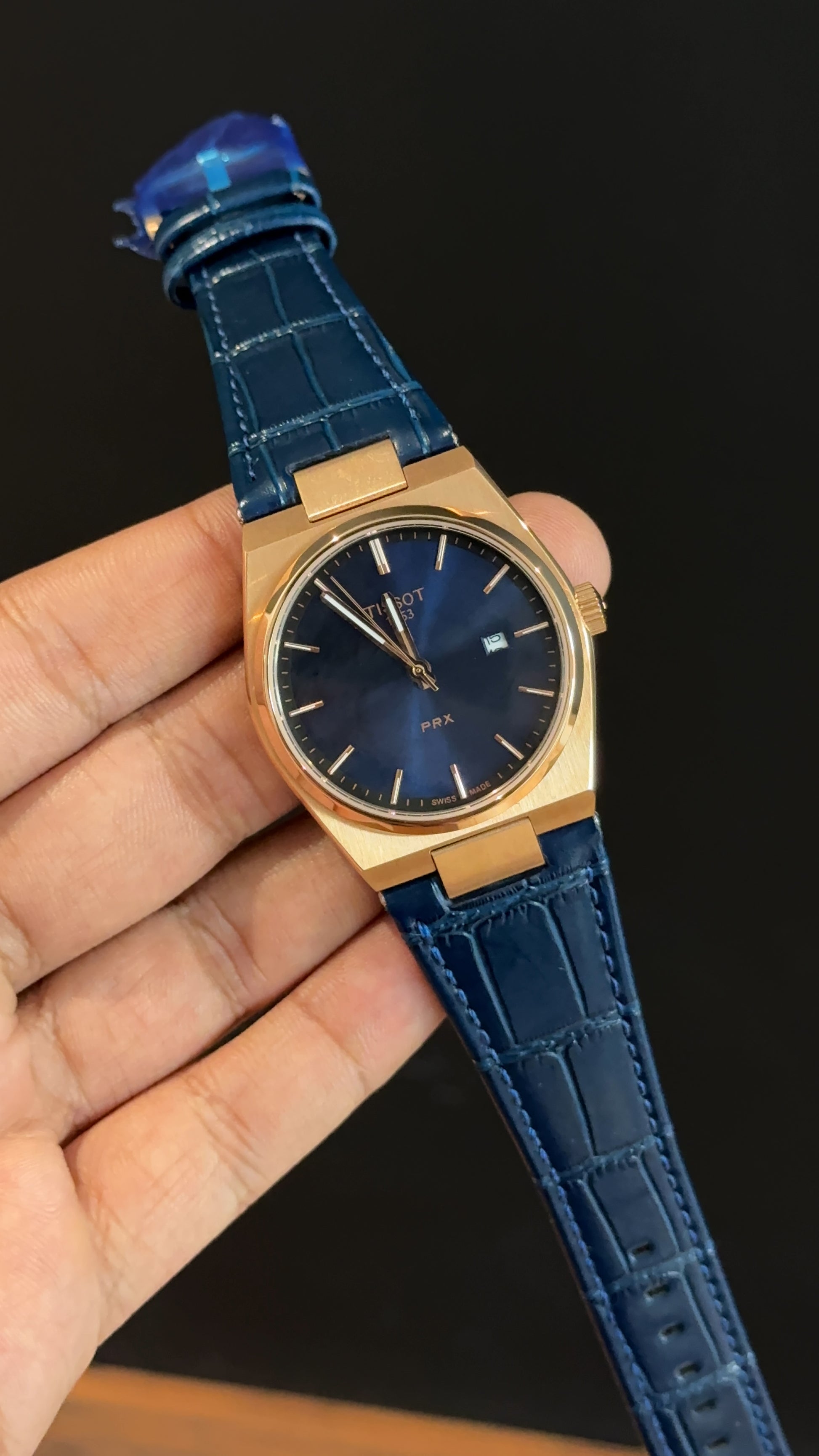 Tissot Prx | Rose Case | Blue Leather Strap | Blue Plain Dial