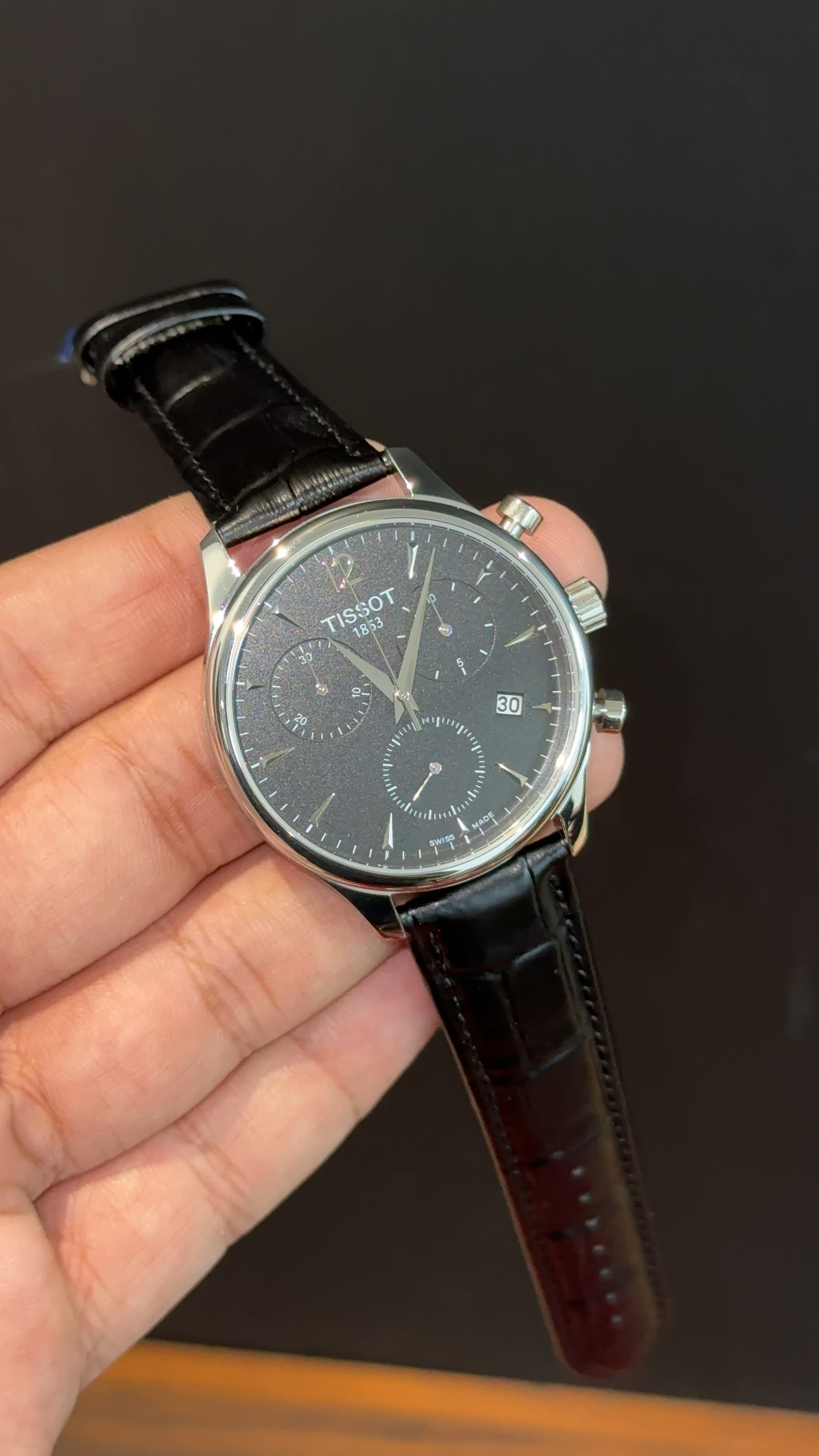 Tissot | 3 Chrono | Black Leather Strap | Black Dial
