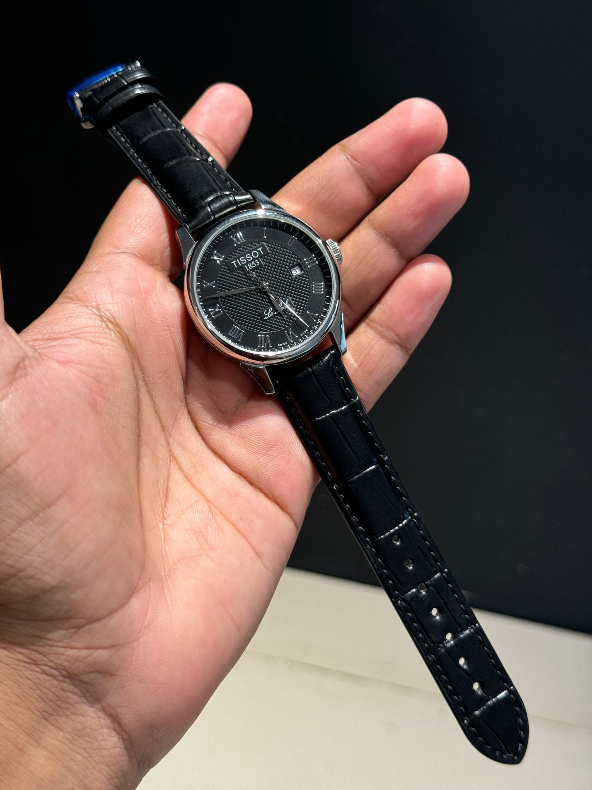 Tissot Silver | Black Leather Strap | Silver Digit | Black Textured Dial