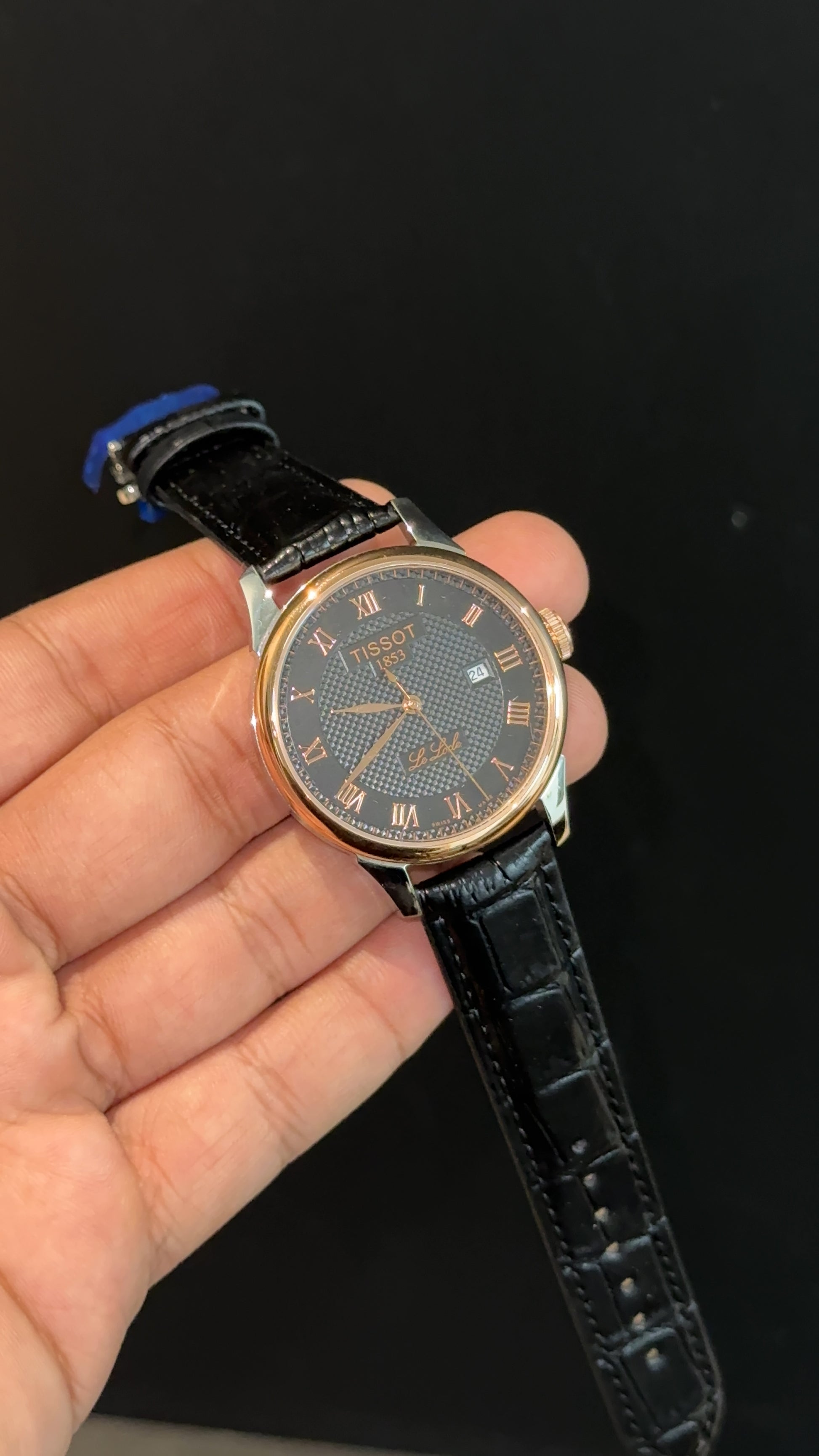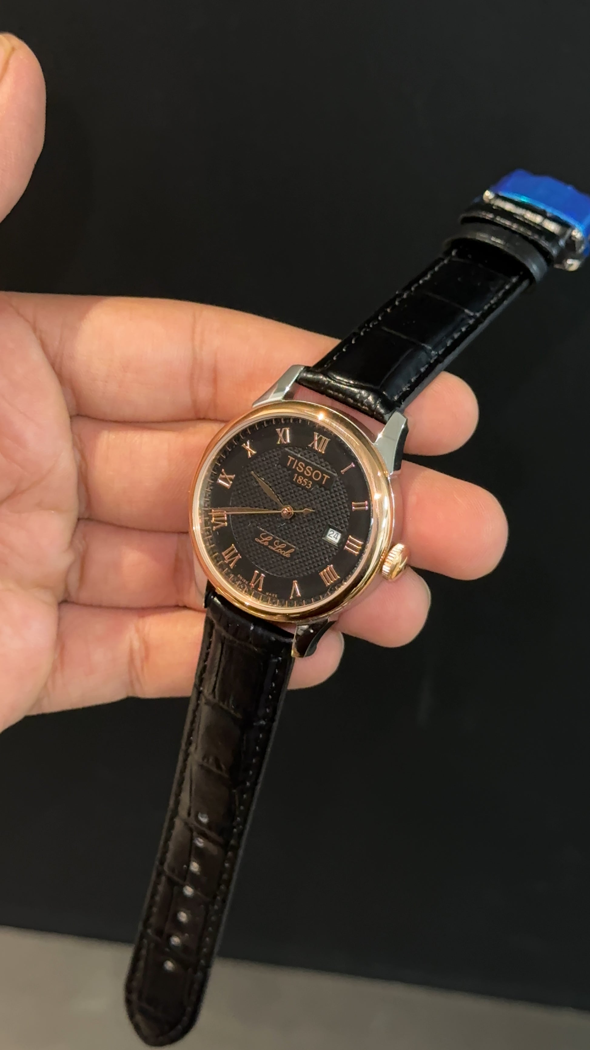 Tissot Rose | Black Leather Strap | Rose Digit Black Textured Dial
