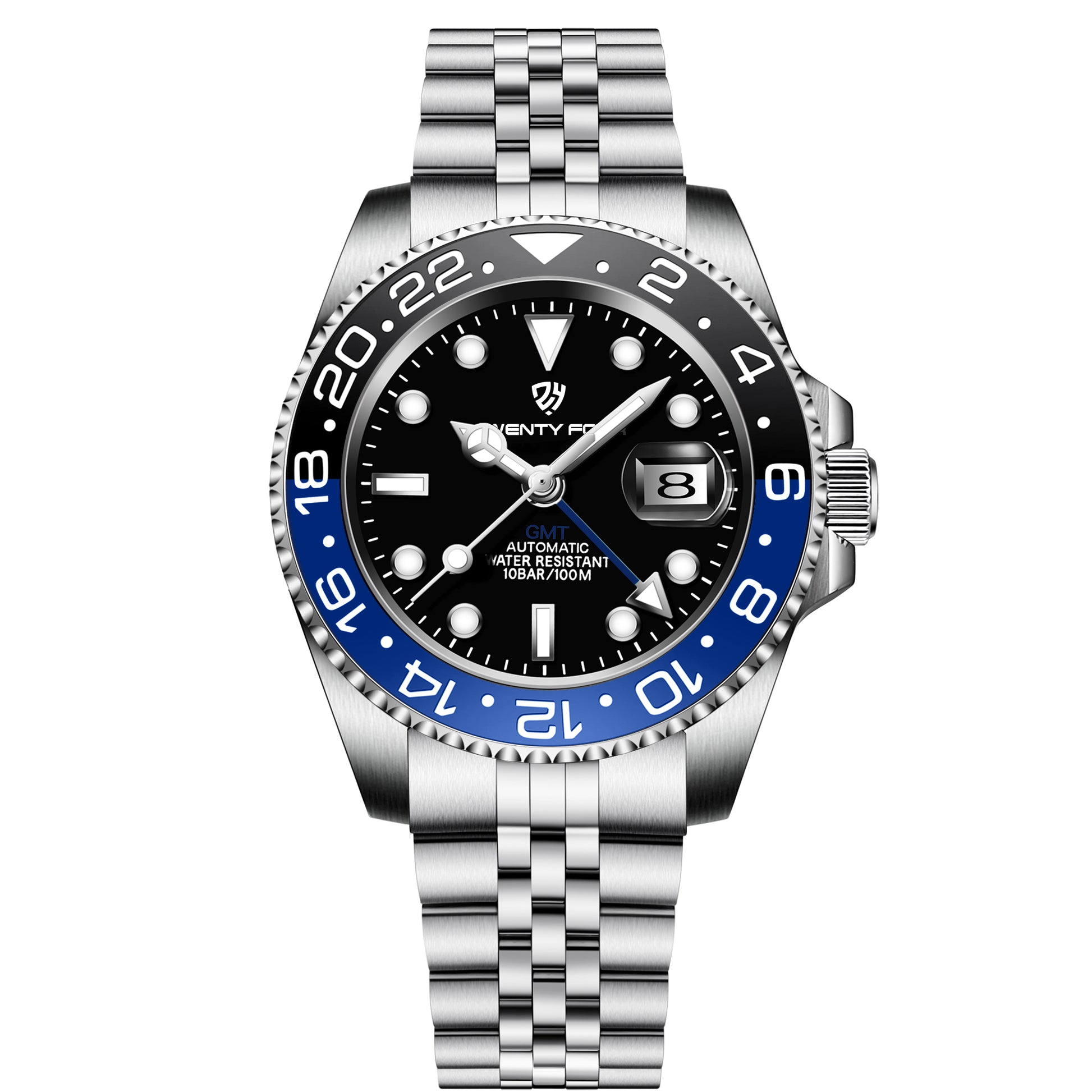 The Twenty four TF-1553 GMT is a stylish and functional timepiece inspired by the legendary Rolex GMT-Master II. Designed for globetrotters and watch enthusiasts, this automatic dual-time watch combines sophisticated aesthetics, robust craftsmanship, and practicality, making it perfect for both travel and everyday wear.