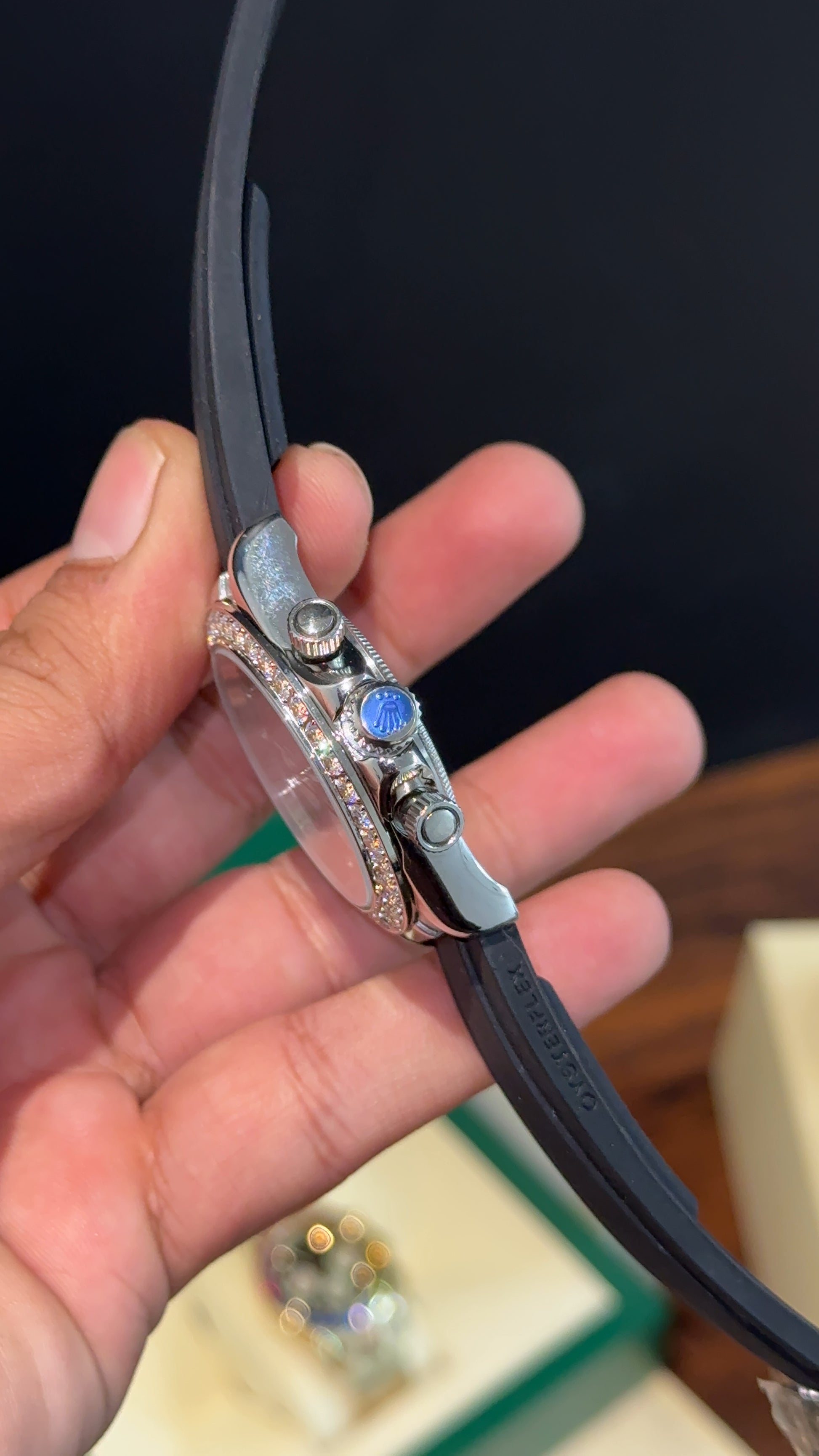 Daytona Silver | Diamond Case | Black Pvc Strap | Diamond Digit | Chrono | Mehroon Dial