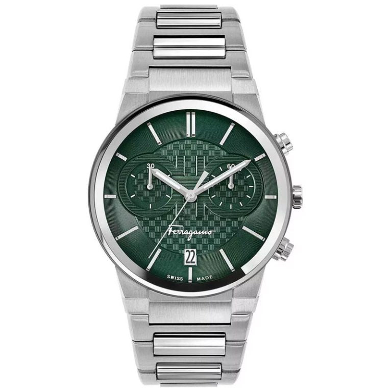 Ferragamo Men’s Swiss Made Quartz Silver Stainless Steel Green Dial 41mm Watch SFME00421