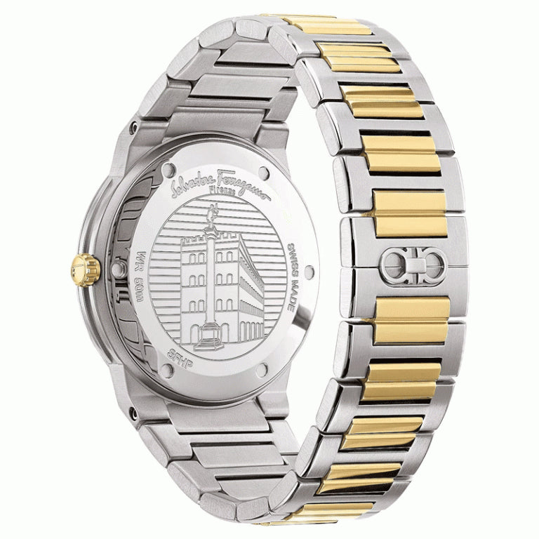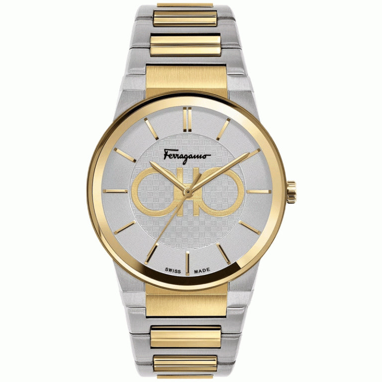 Ferragamo Swiss Made Quartz Two Tone Stainless Steel Silver Dial 41mm Watch SFHP520