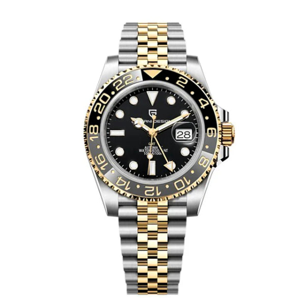The Pagani Design PD-1662 GMT is a stylish and functional timepiece inspired by the legendary Rolex GMT-Master II. Designed for globetrotters and watch enthusiasts, this automatic dual-time watch combines sophisticated aesthetics, robust craftsmanship, and practicality, making it perfect for both travel and everyday wear.