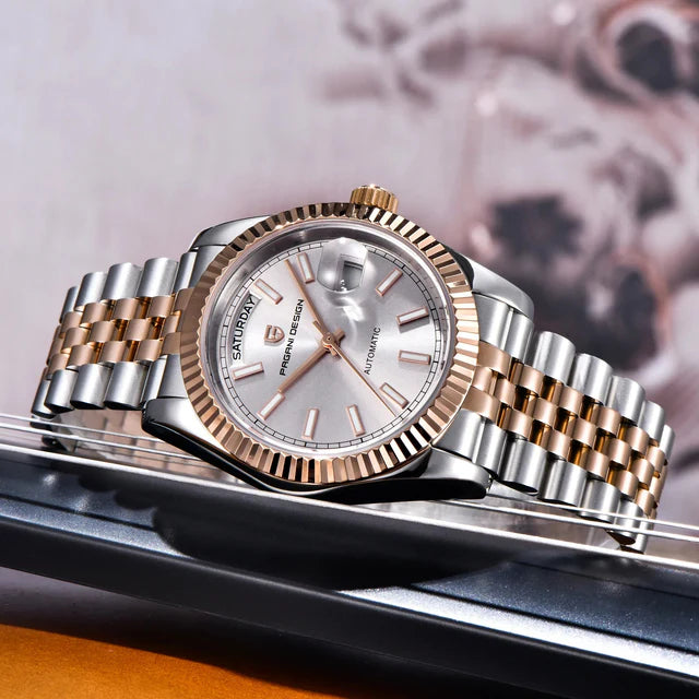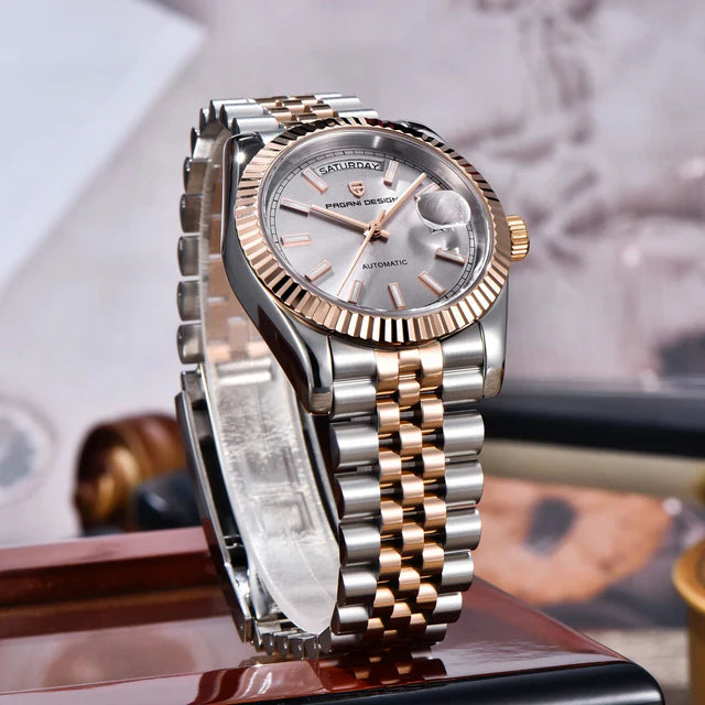 SRGGY Day-Date is a stunning timepiece inspired by the iconic Rolex Day-Date, exuding luxury, sophistication. Designed for those who appreciate refined craftsmanship and premium aesthetics, this watch is a perfect companion for both formal and everyday wear.