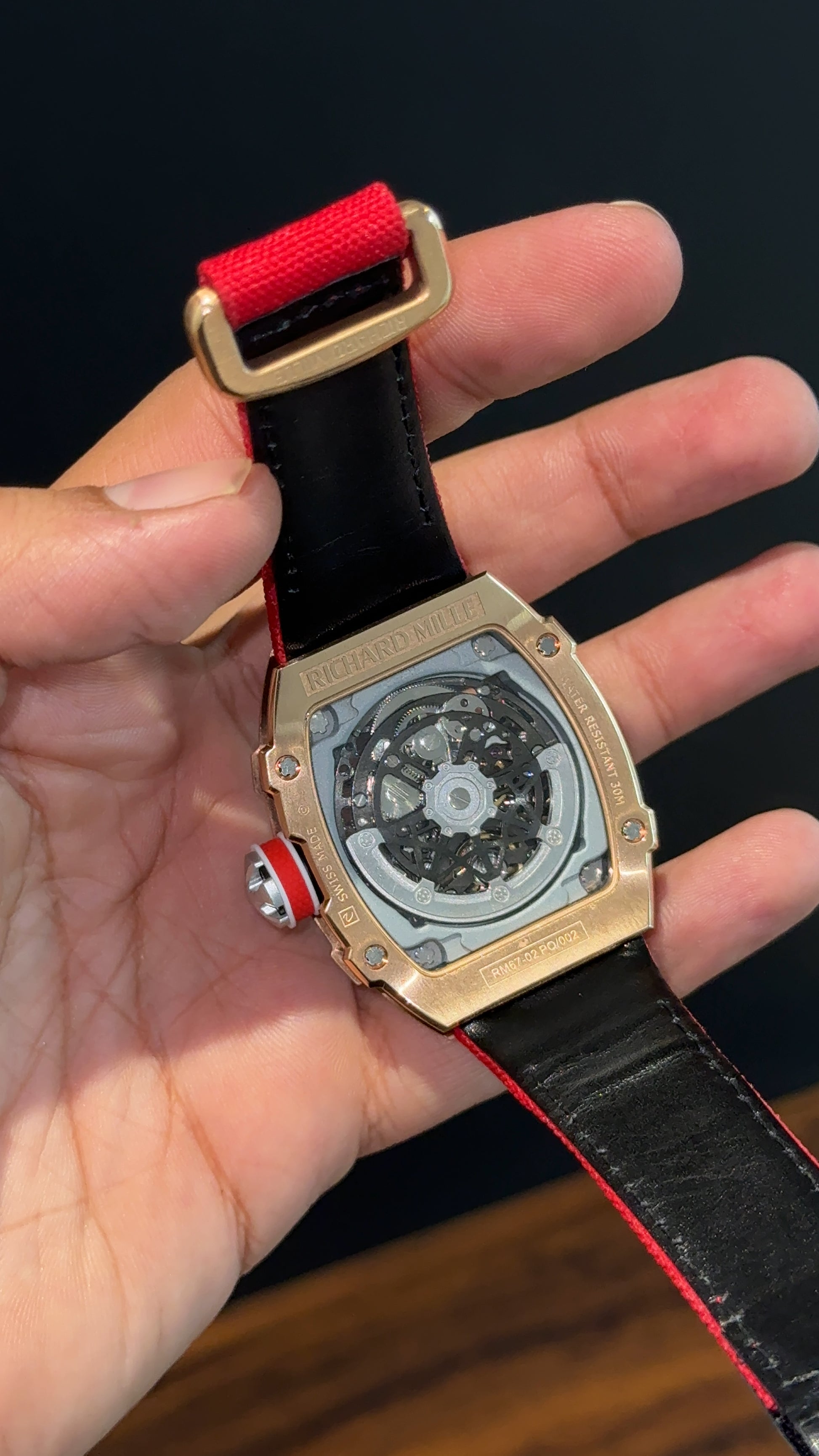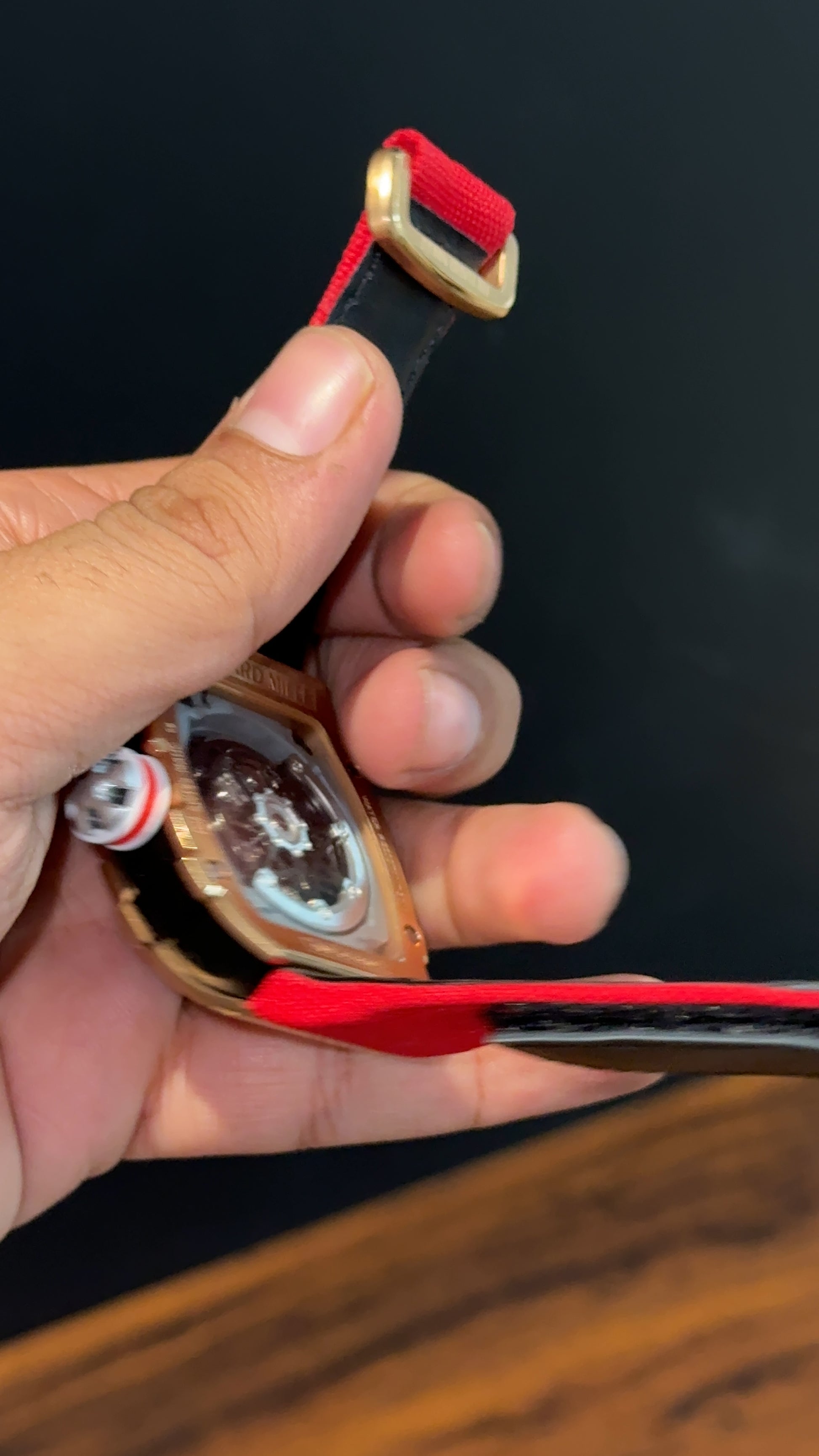 Premium Richard Mille | RM 67-02 Series | Rose Case | Skeleton | Red Strap | Black Dial