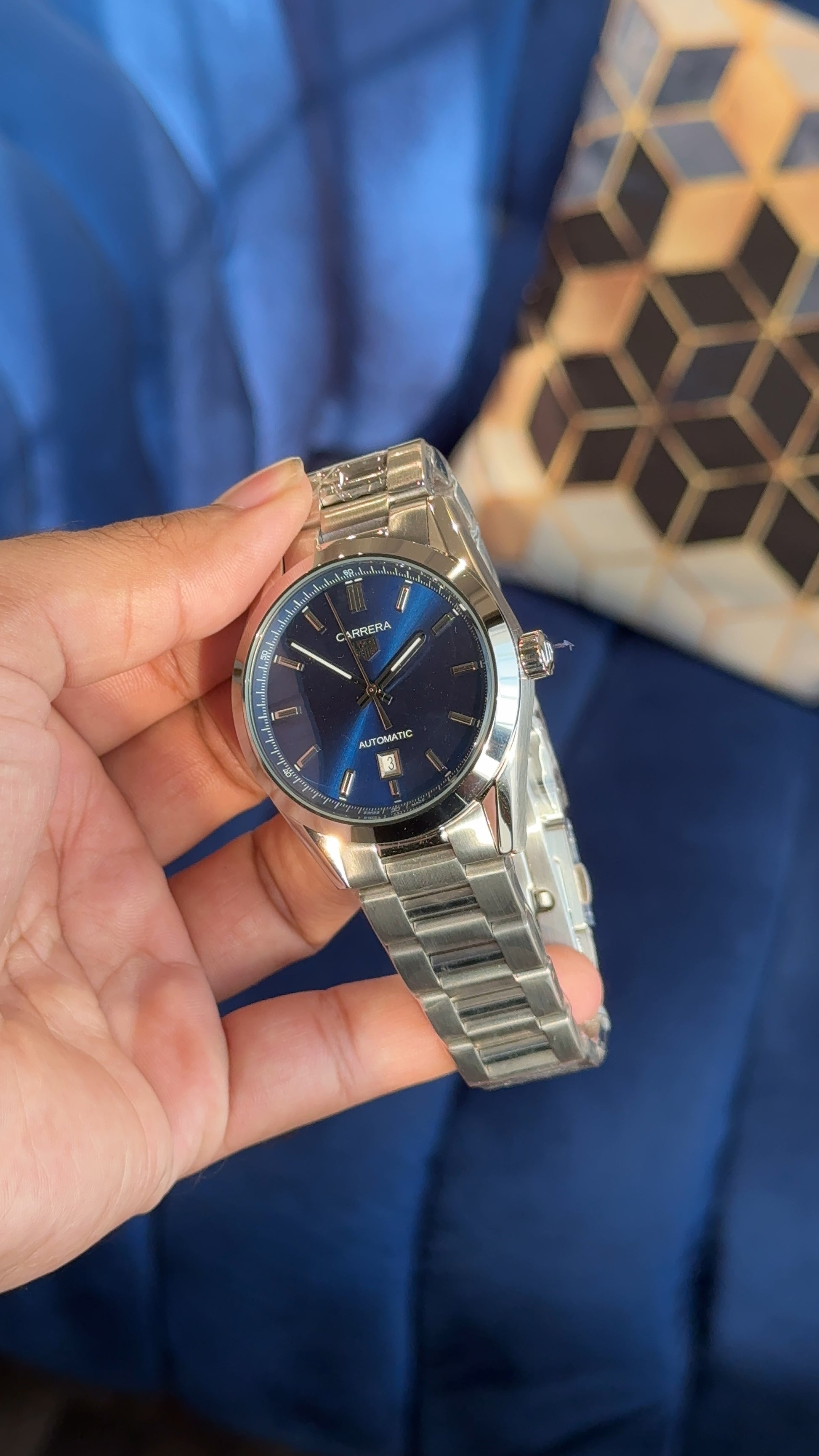 Tag Carrera Auto | Silver Chain | Blue Dial