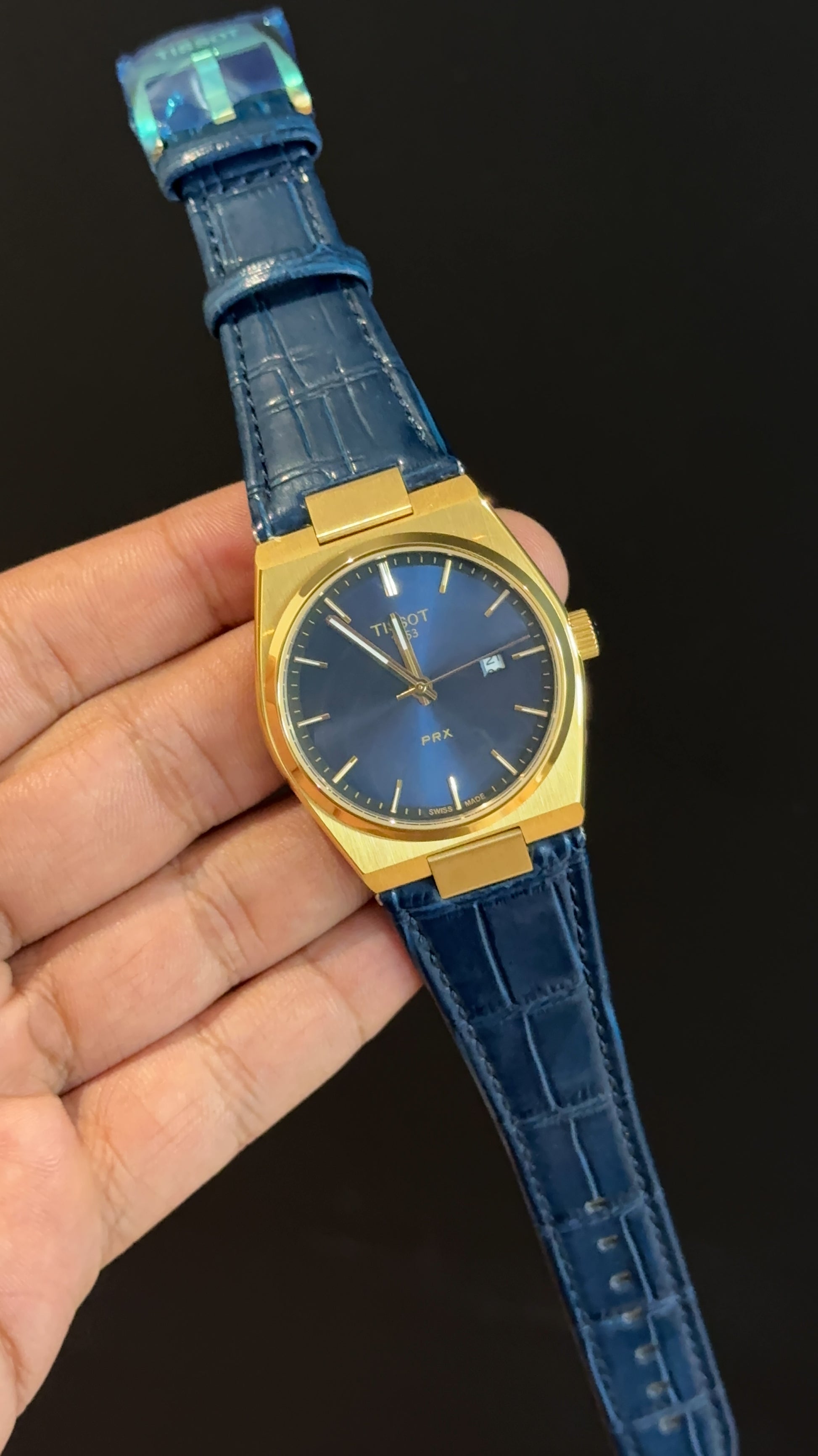 Tissot Prx | Gold Case | Blue Leather Strap | Blue Plain Dial