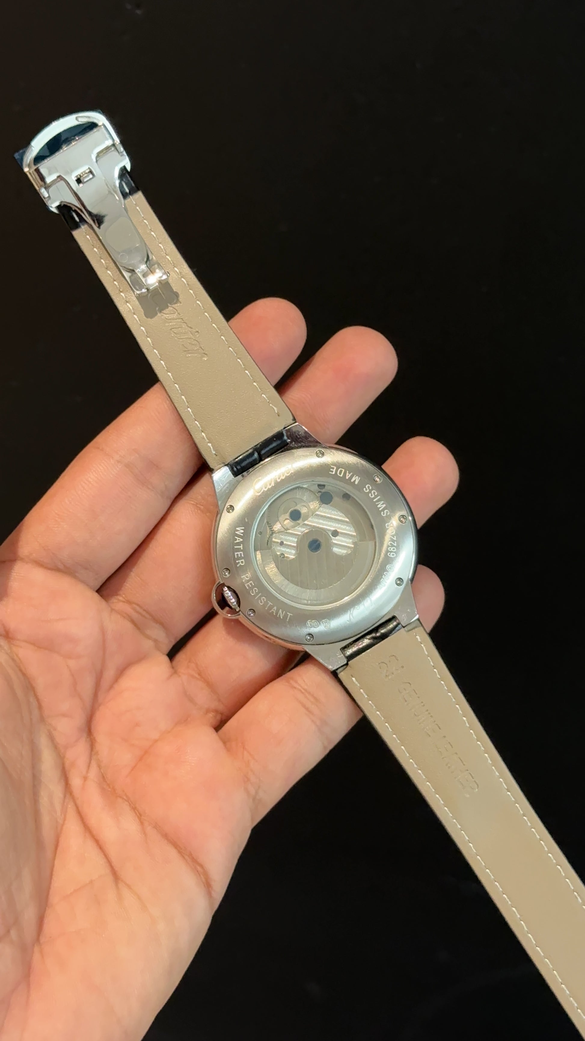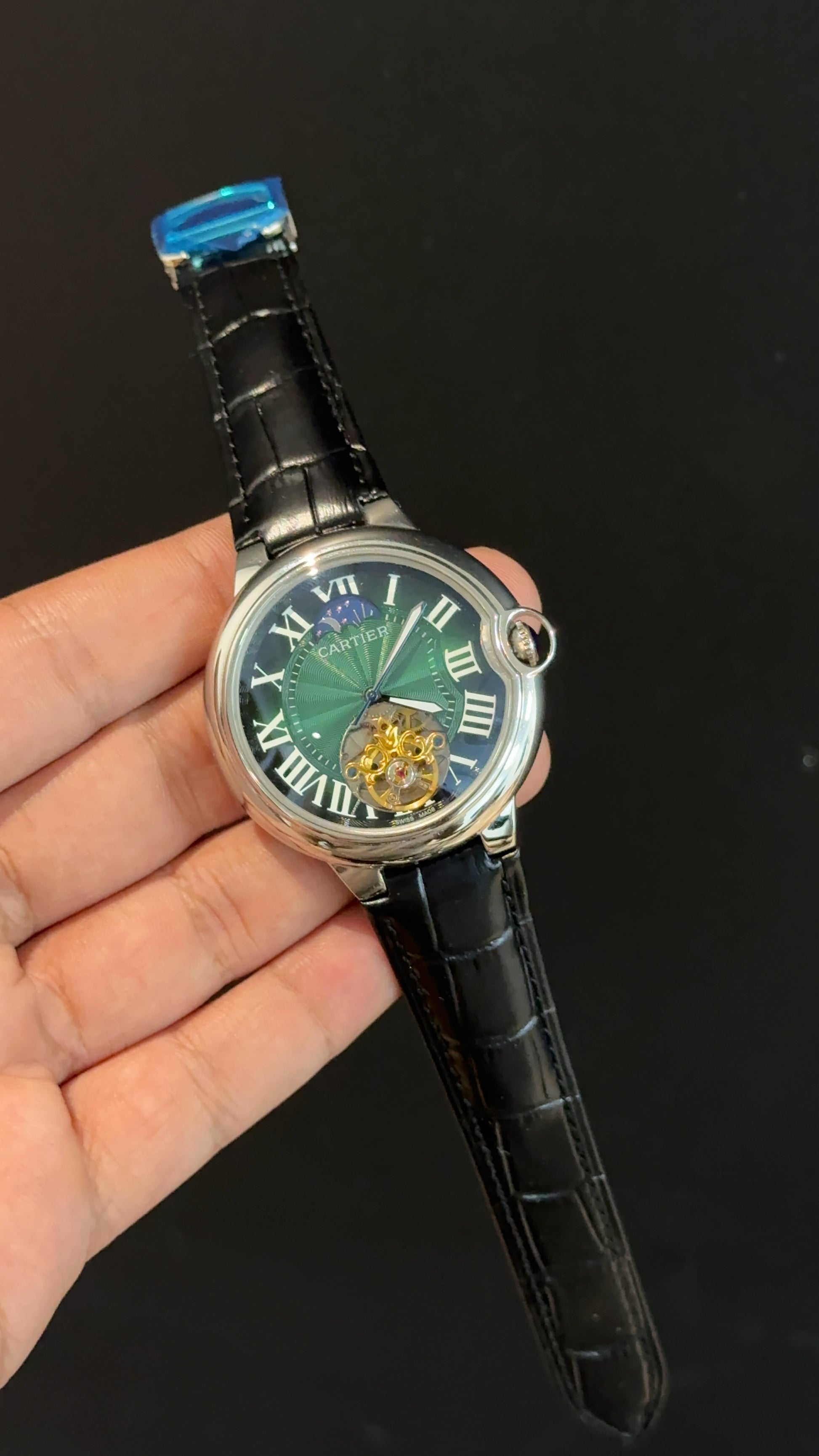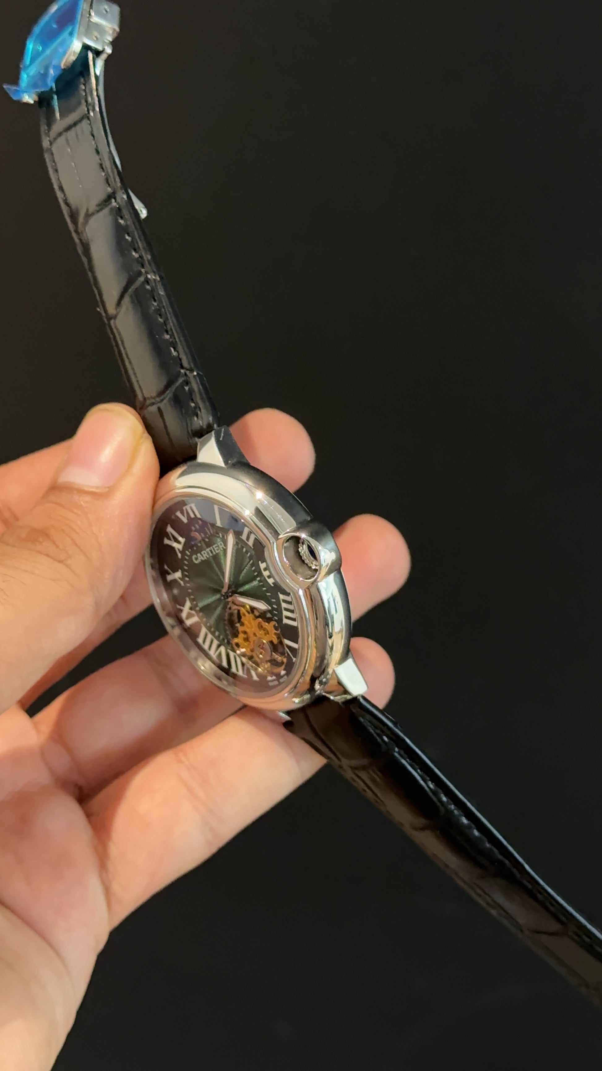 Cartier | Silver Oval Bezel | Pendulum | Black Strap | Greenish Index Dial